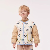 【男女童同款 】 儿童装轻暖鸭绒羽绒服男女同款假两件外套 米色