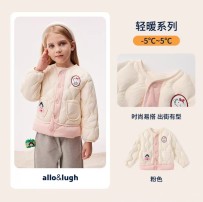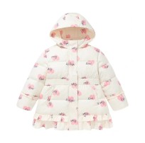 【女童】 阿路和如童装冬季新款儿童女童中长款羽绒服印花荷叶白色
