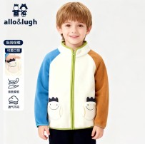 【男童】 阿路和如童装男童卫衣冬款绒衫卫衣 户外摇粒绒外套卡其色