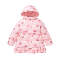 【女童】 阿路和如童装冬季新款儿童女童中长款羽绒服印花荷叶粉红色