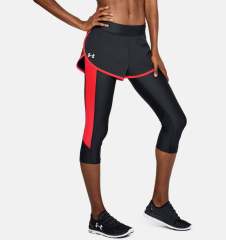 【女款】UA 二合一紧身中裤 Armour Fly Fast Shapri 1305145-004 Black / NEON CORAL