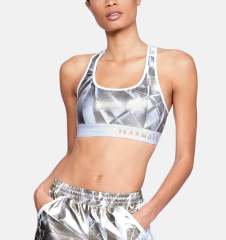 【女款】UA Mid Crossback Metallic Print 中强度运动内衣 1310983-101 White / White