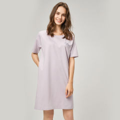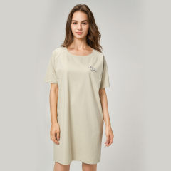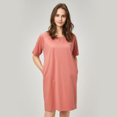 【女款】 休闲亲肤女士圆领家居服短袖长款宽松睡裙