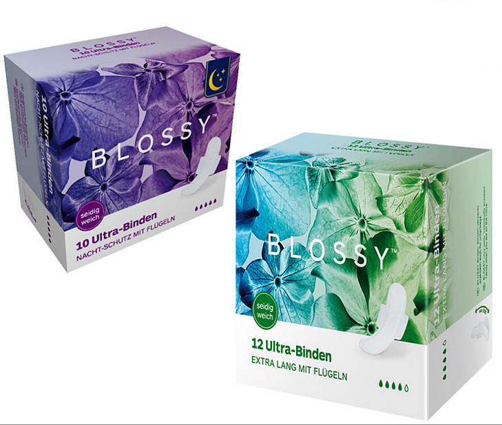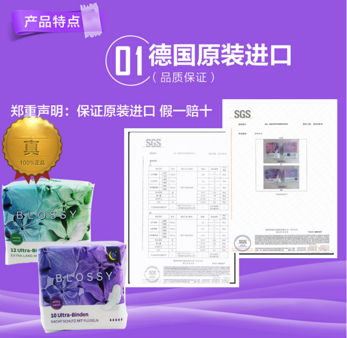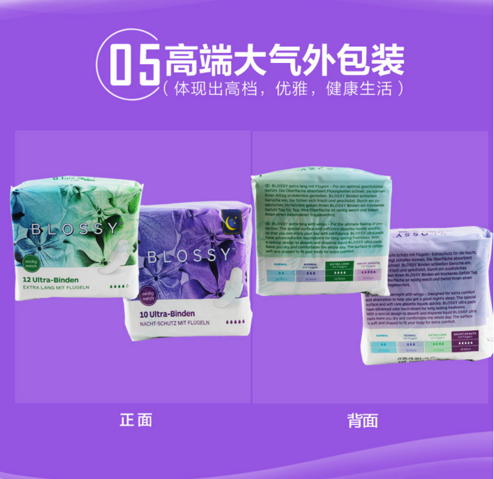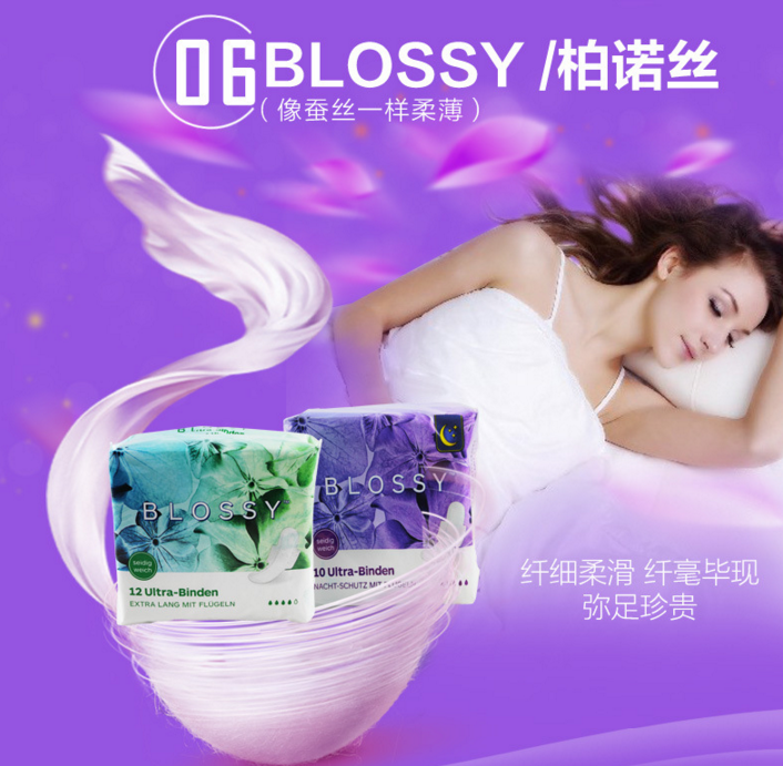 BLOSSY/柏诺丝德国原装进口卫生巾日用夜用组合装中量多量姨妈巾盒装
