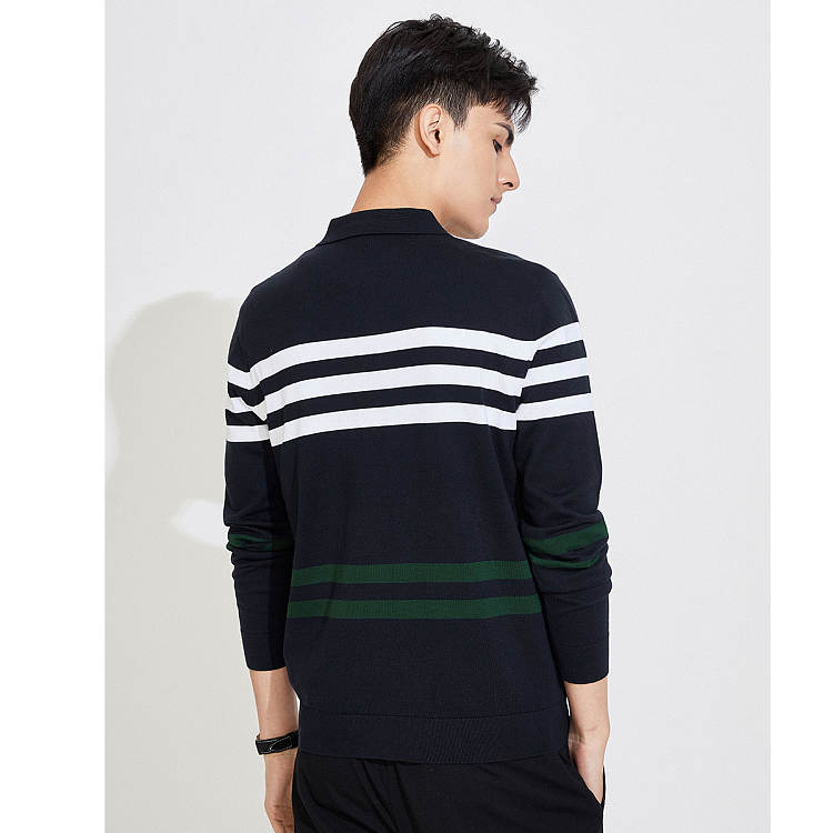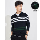 【男款】 秋季亲肤柔软透气条纹男士长袖翻领T恤