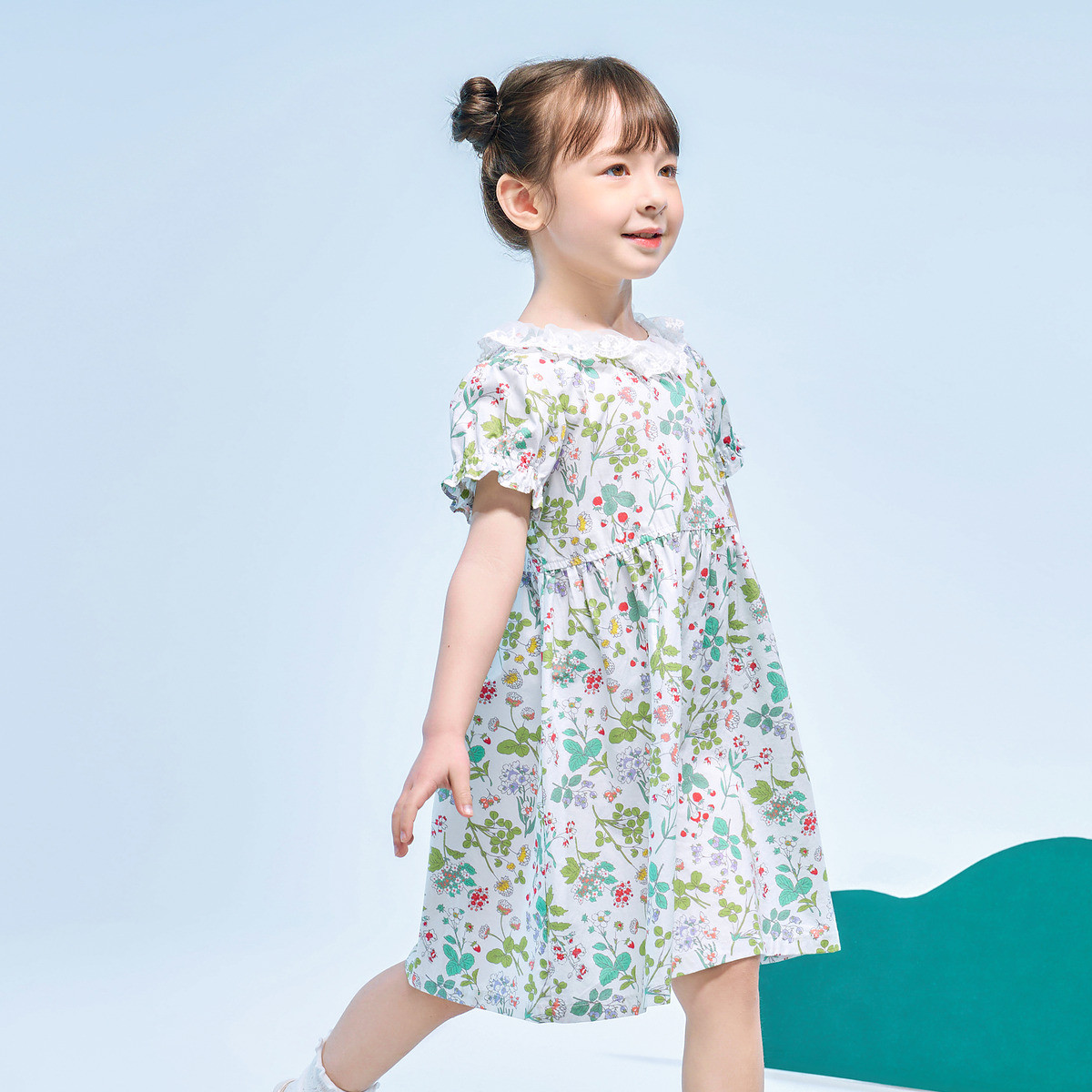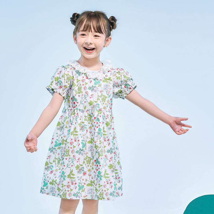 【女童】 夏季新款童装儿童女童连衣裙洋气时髦泡泡袖小女孩