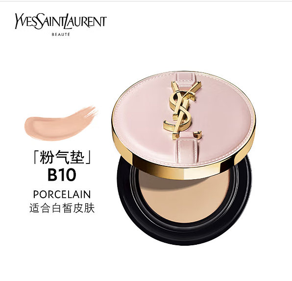 YSL圣罗兰明彩粉光轻垫粉底液12g B10# SPF23/PA++ 粉皮革