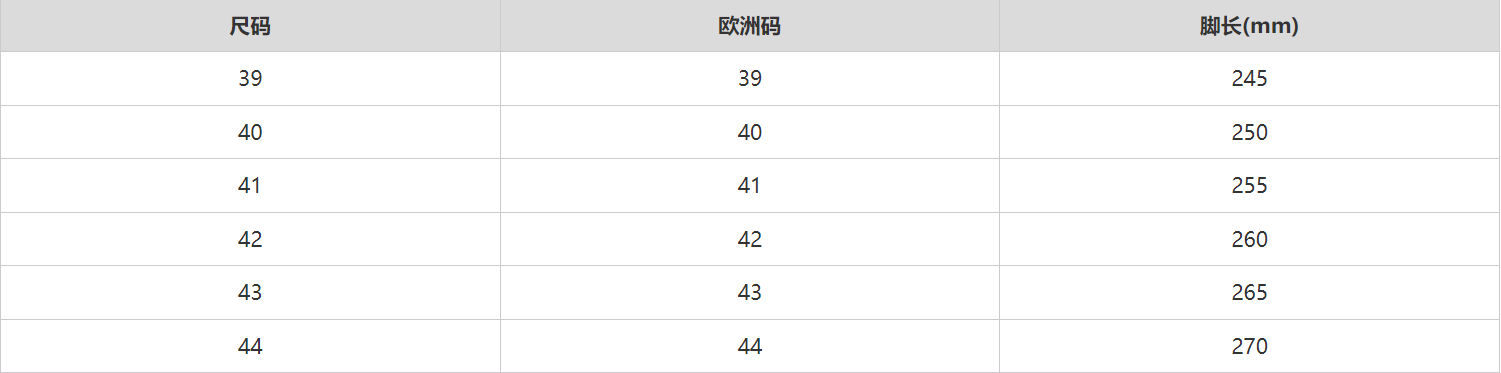 尺码信息