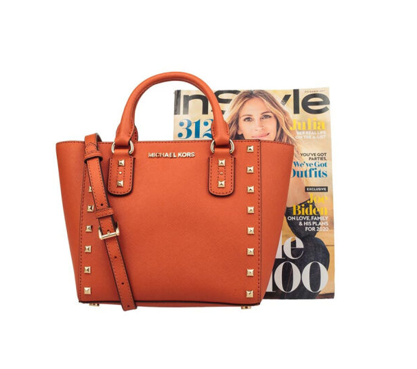 MK 35H7GD1C1L 桃红色SANDRINE系列女士时尚铆钉手提单肩斜挎包 TANGERINE