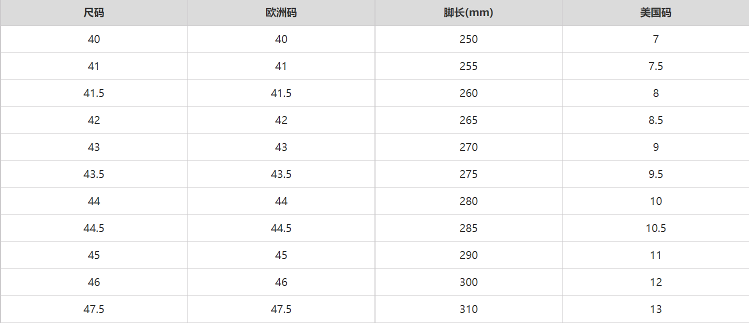 尺码信息