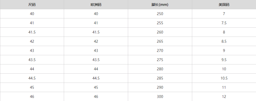 尺码信息