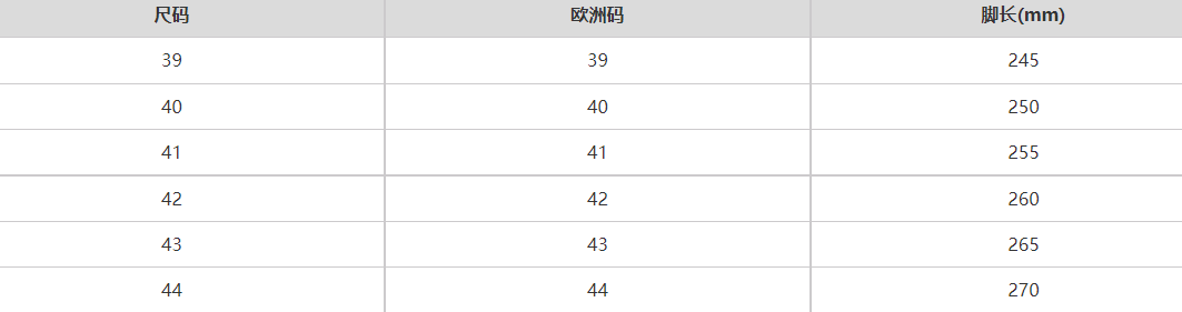 尺码信息