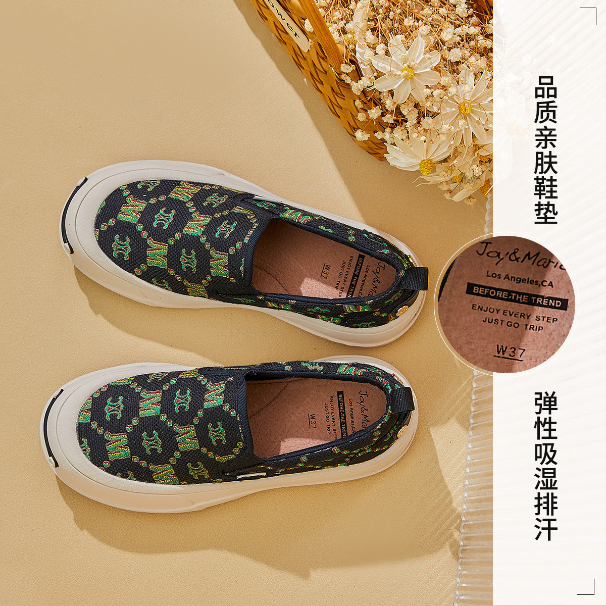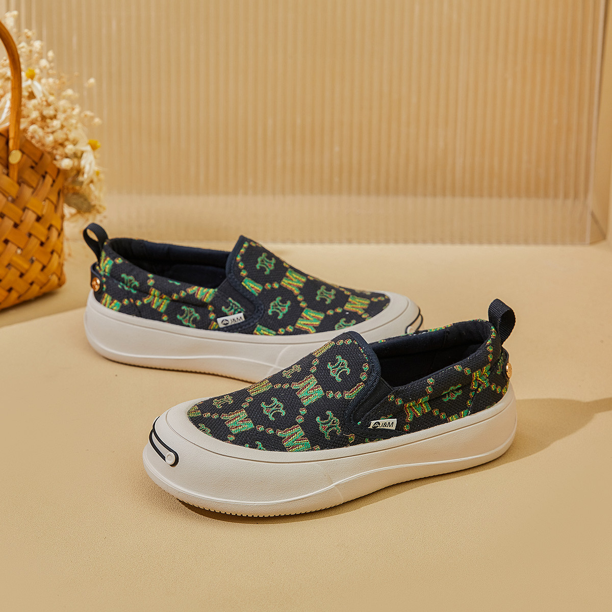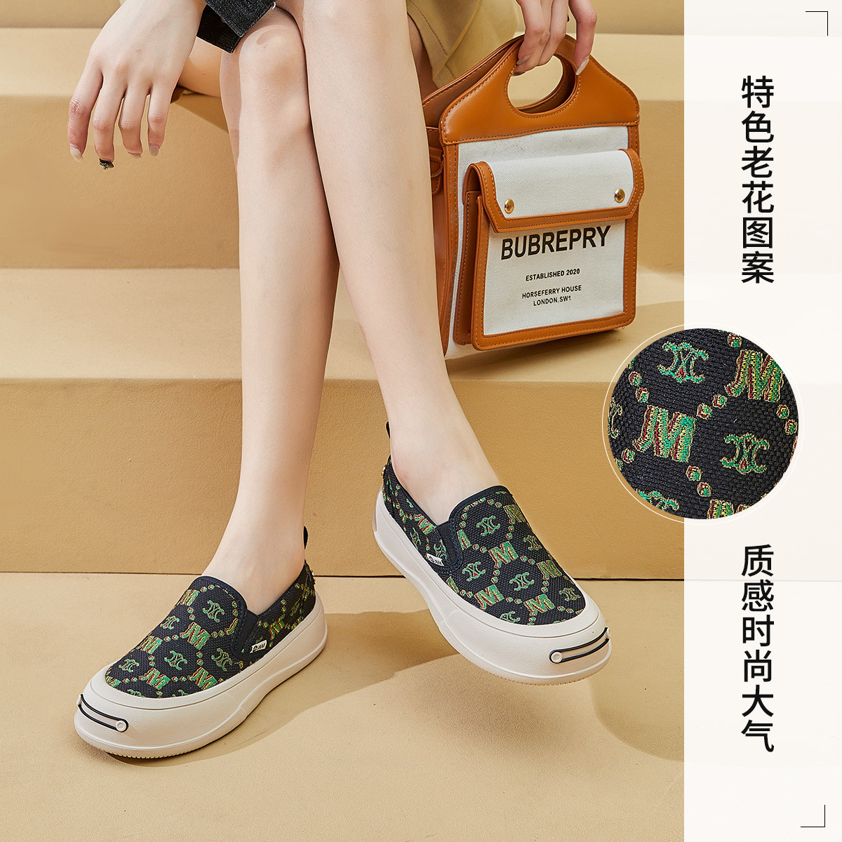 【女款】 老花纹开口笑板鞋女鞋