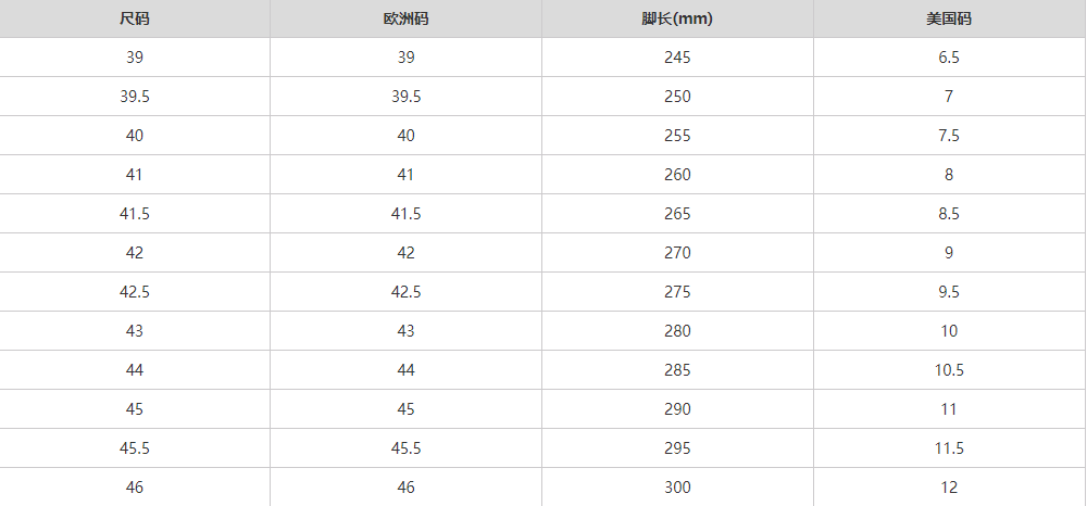 尺码信息