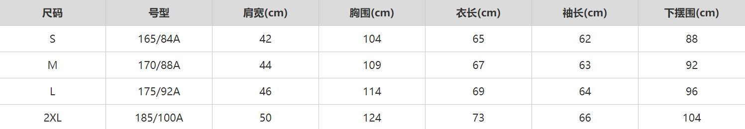 尺码信息