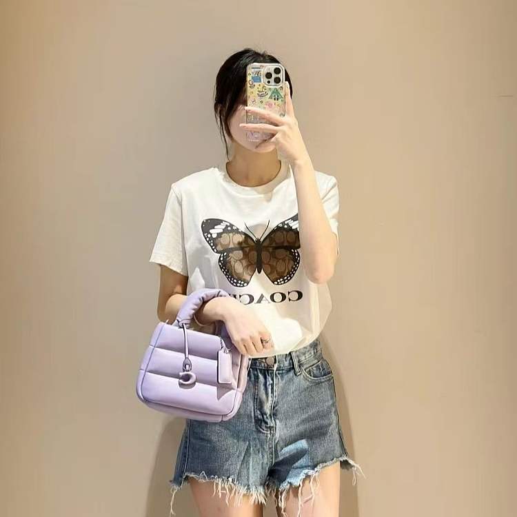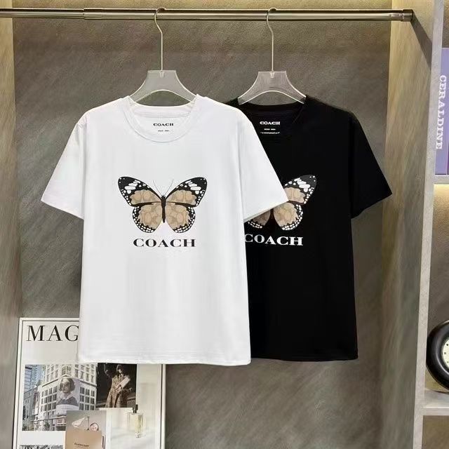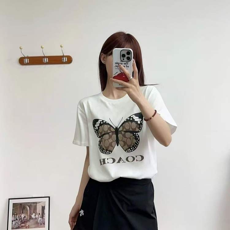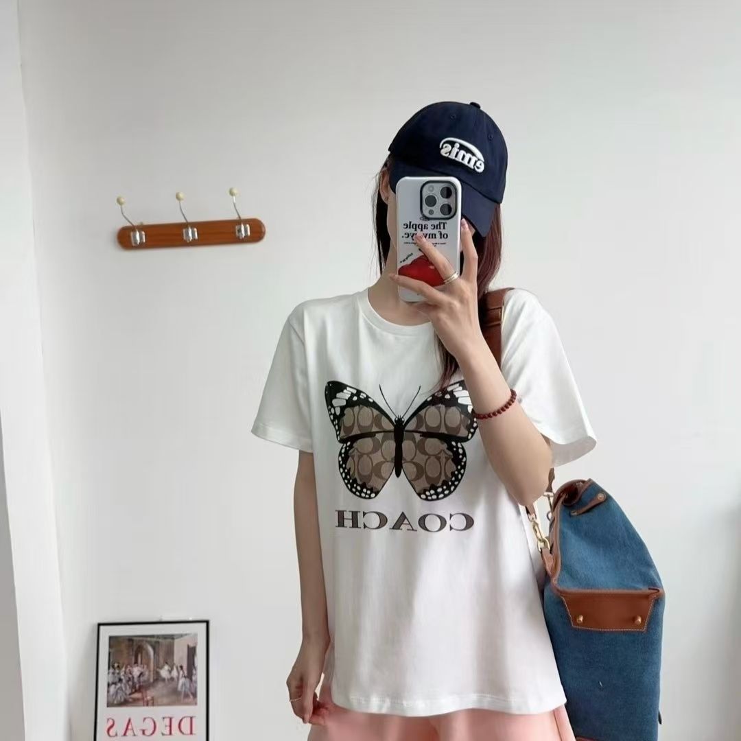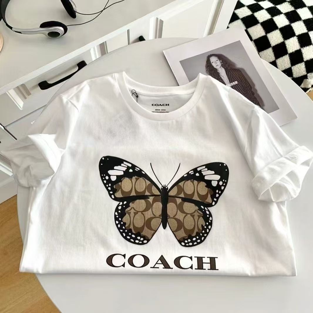 Coach寇驰圆领新款印花蝴蝶字母短袖T恤 男女同款 白色