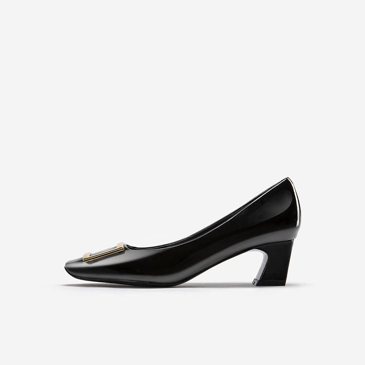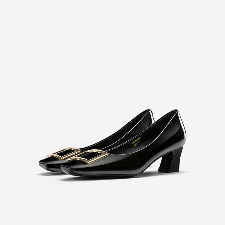 【女款】 漆皮方头浅口单鞋女新款粗中跟时尚通勤鞋