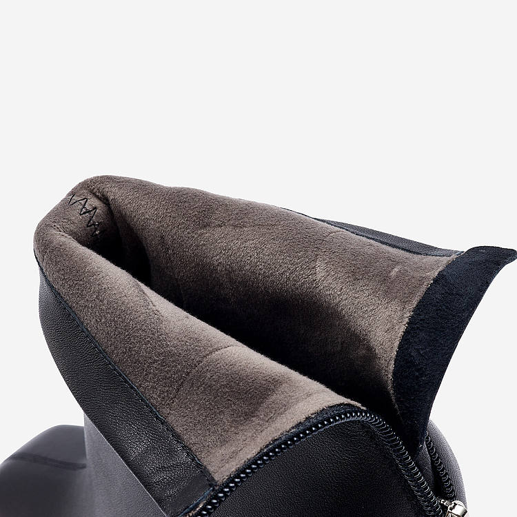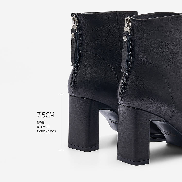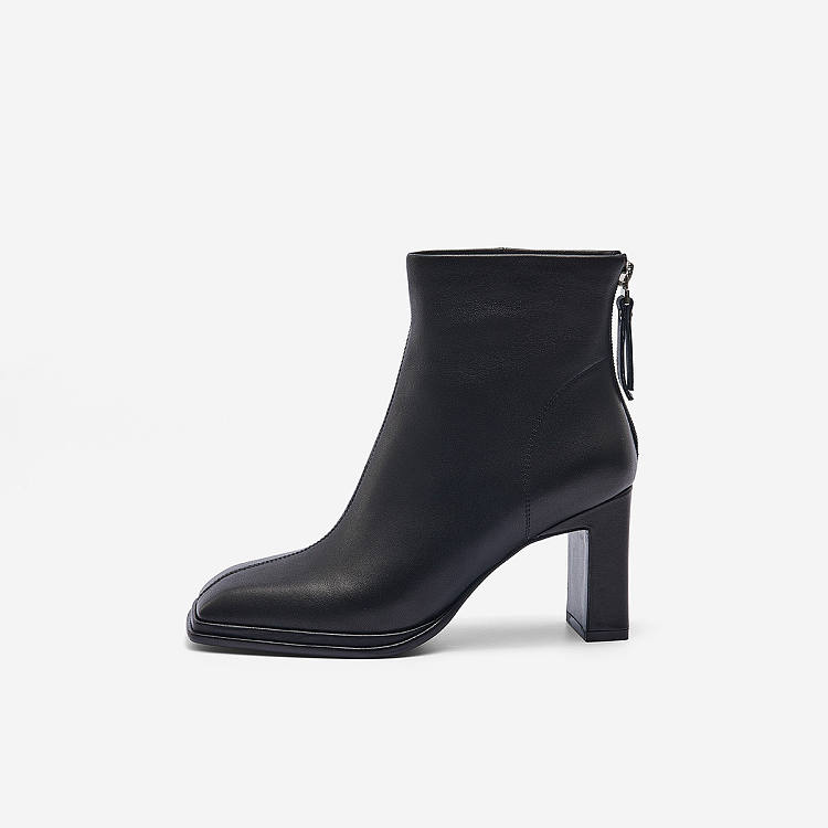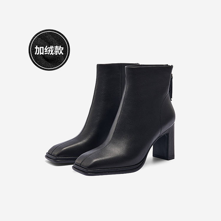 【女款】 新款简约时装靴女舒适方头粗高跟短筒靴