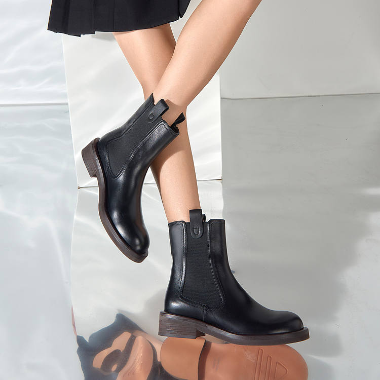 【女款】 新款真皮百搭烟筒靴短靴