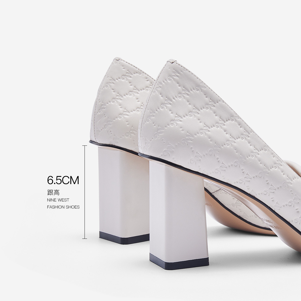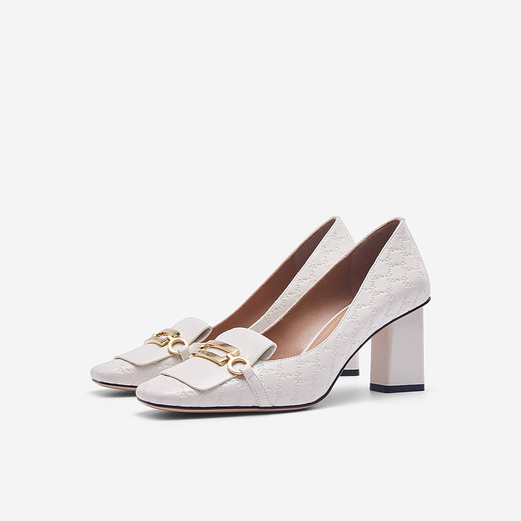 【女款】 秋季新款方头粗跟女鞋个性压花百搭通勤单鞋女