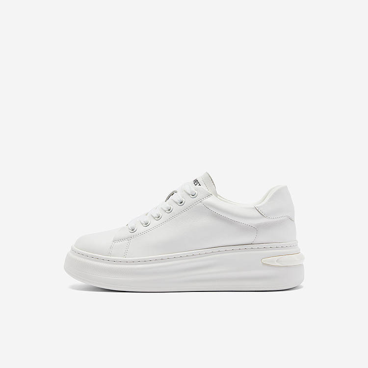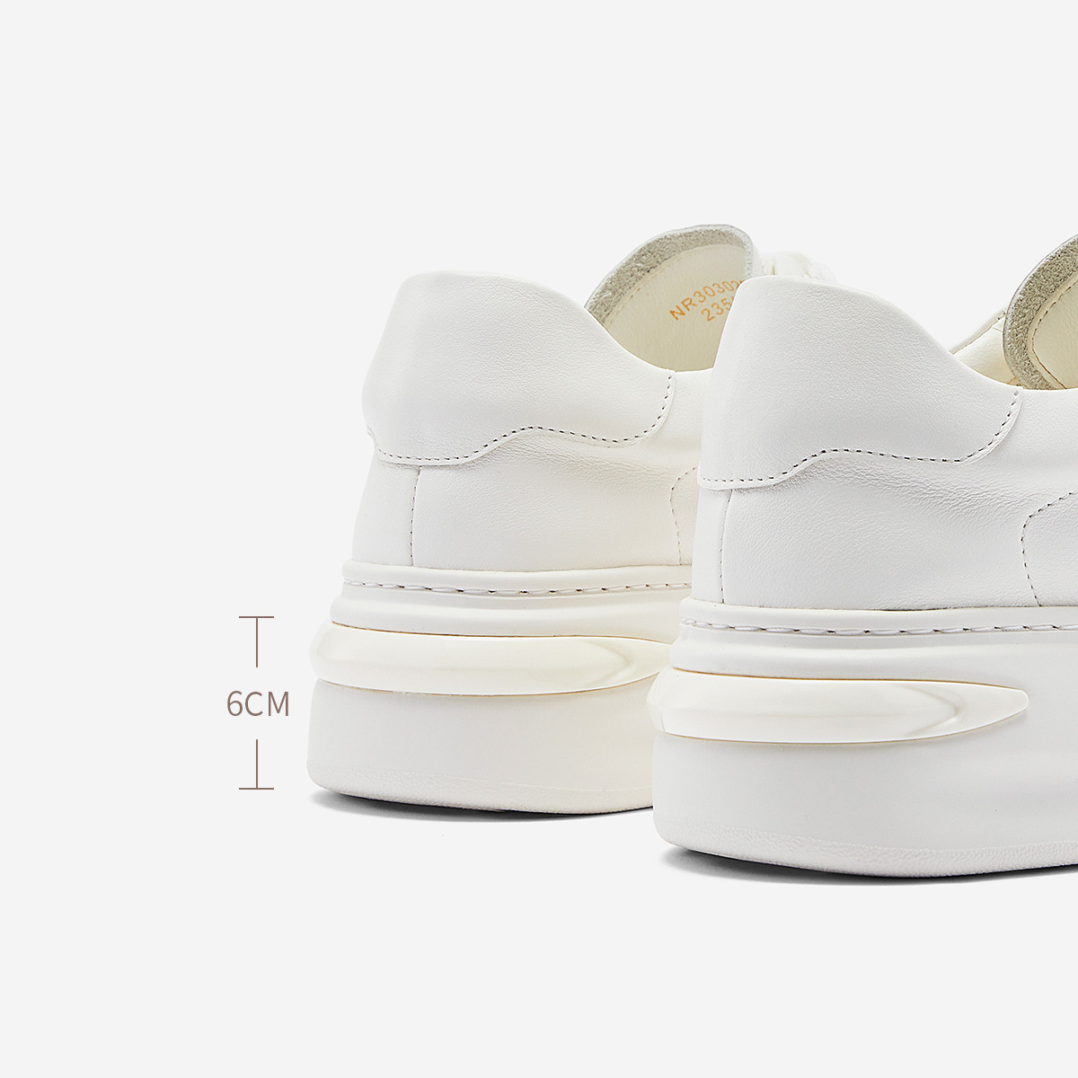 【女款】 时尚百搭小白鞋女真皮圆头厚底增高休闲板鞋
