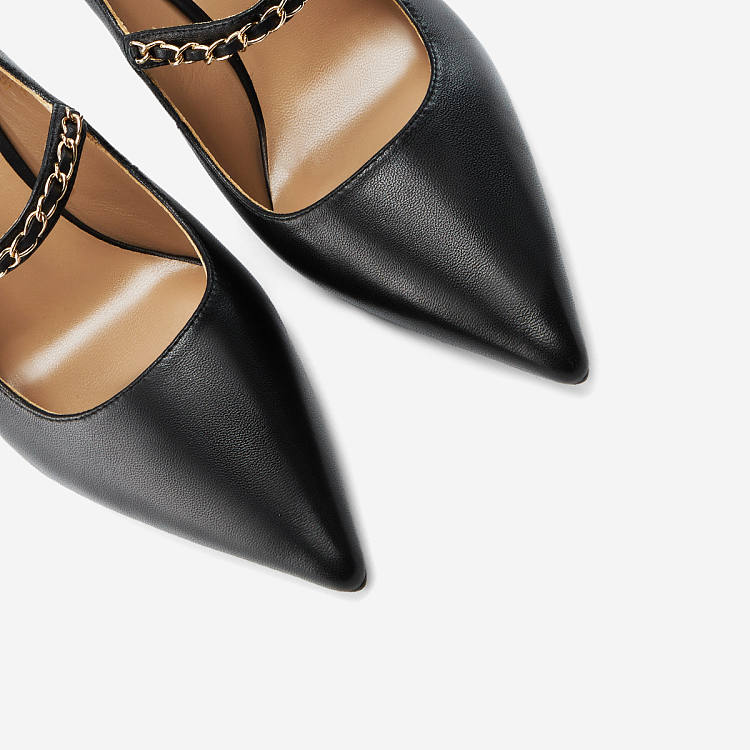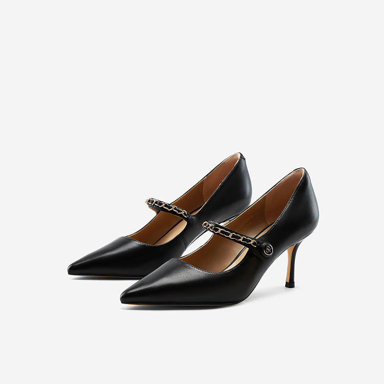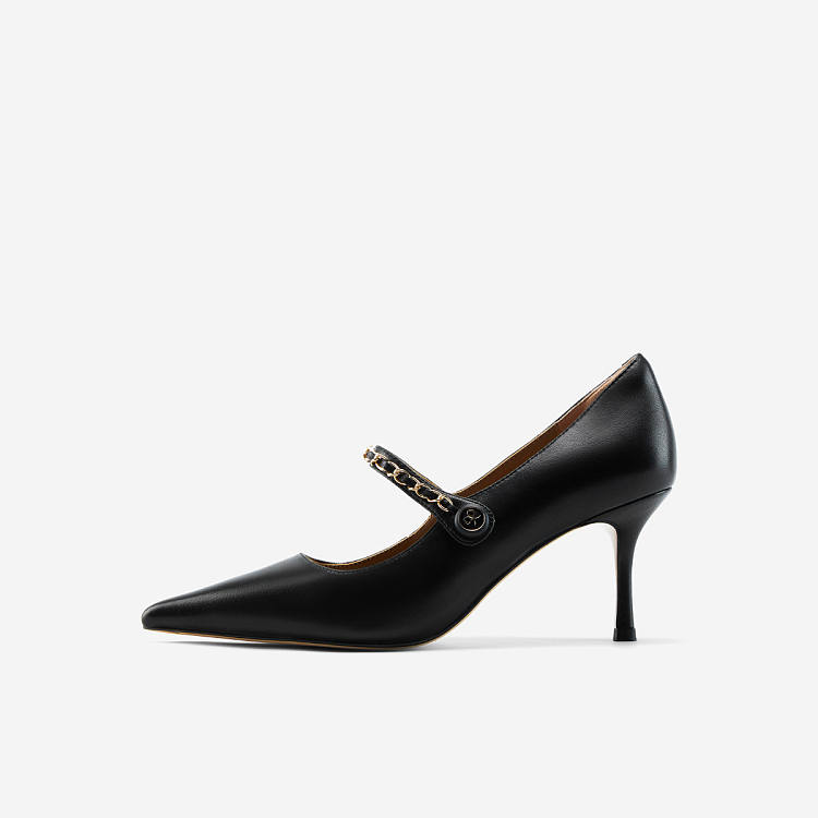 【女款】 链条尖头单鞋女秋季新款中跟细跟简约气质玛丽珍女鞋