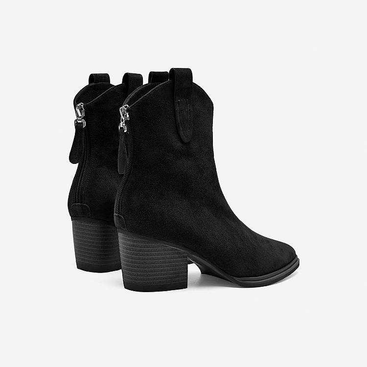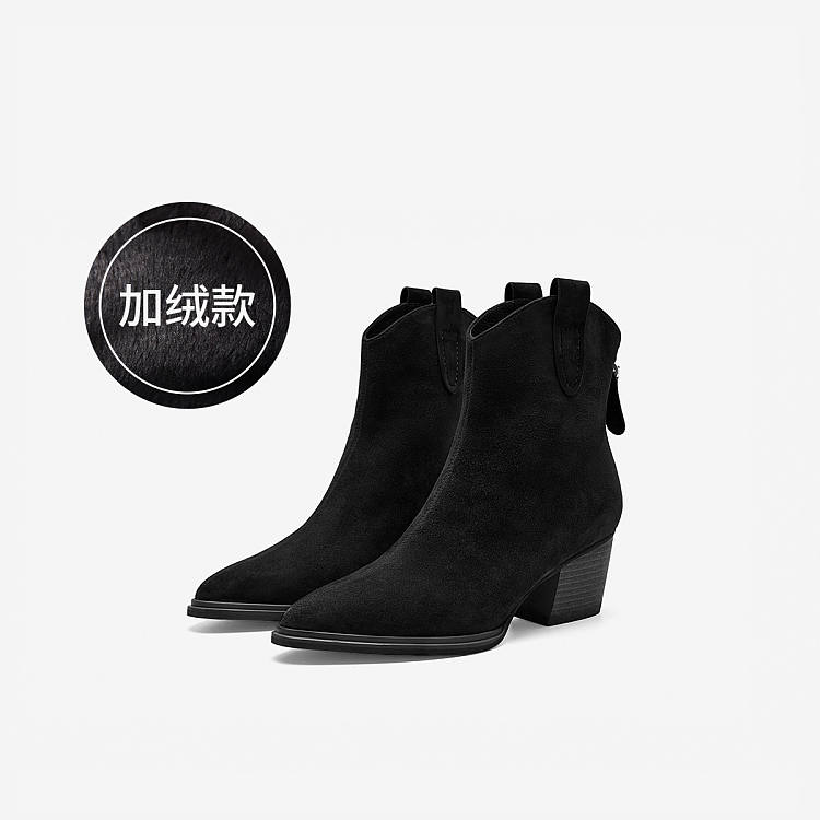 【女款】 【加绒保暖】玖熙酷飒西部短靴秋冬羊反绒尖头靴