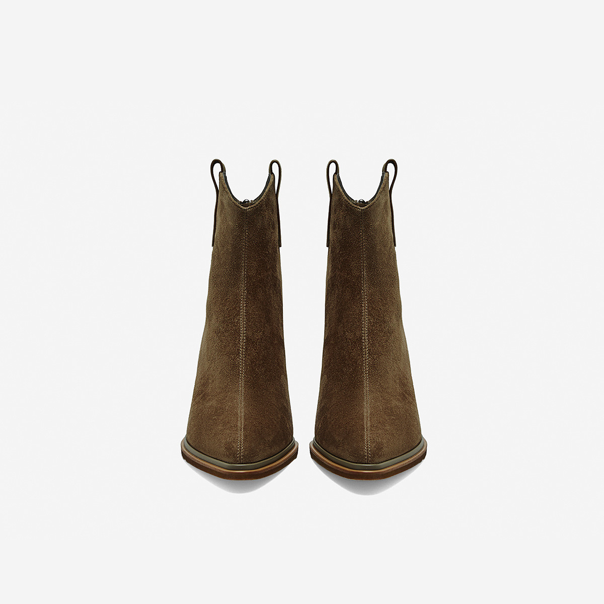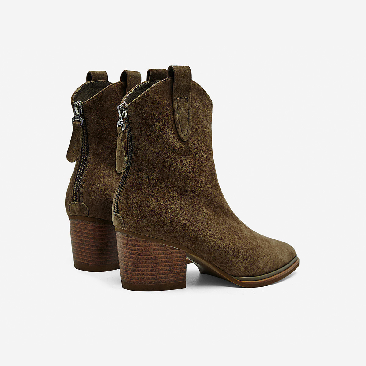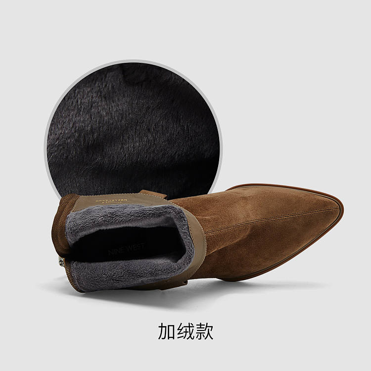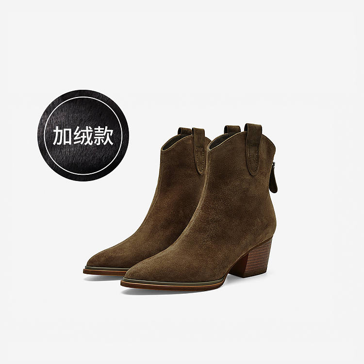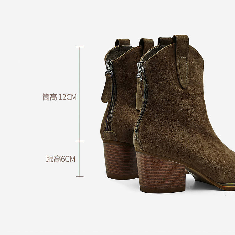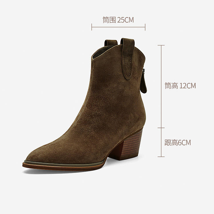 【女款】 【加绒保暖】玖熙酷飒西部短靴秋冬羊反绒尖头靴