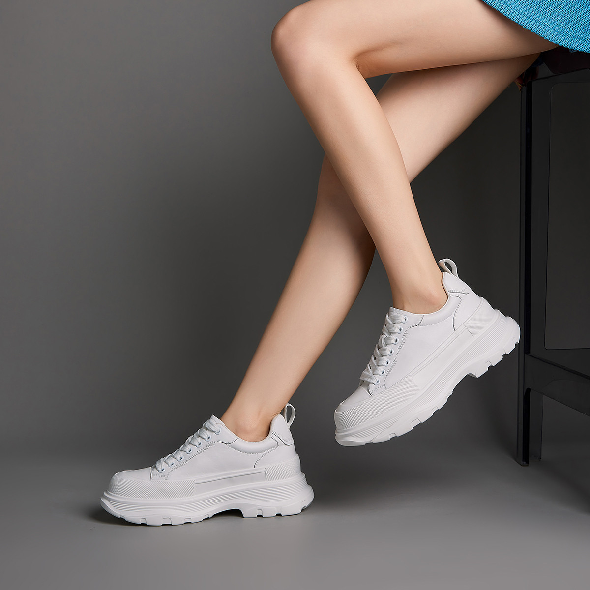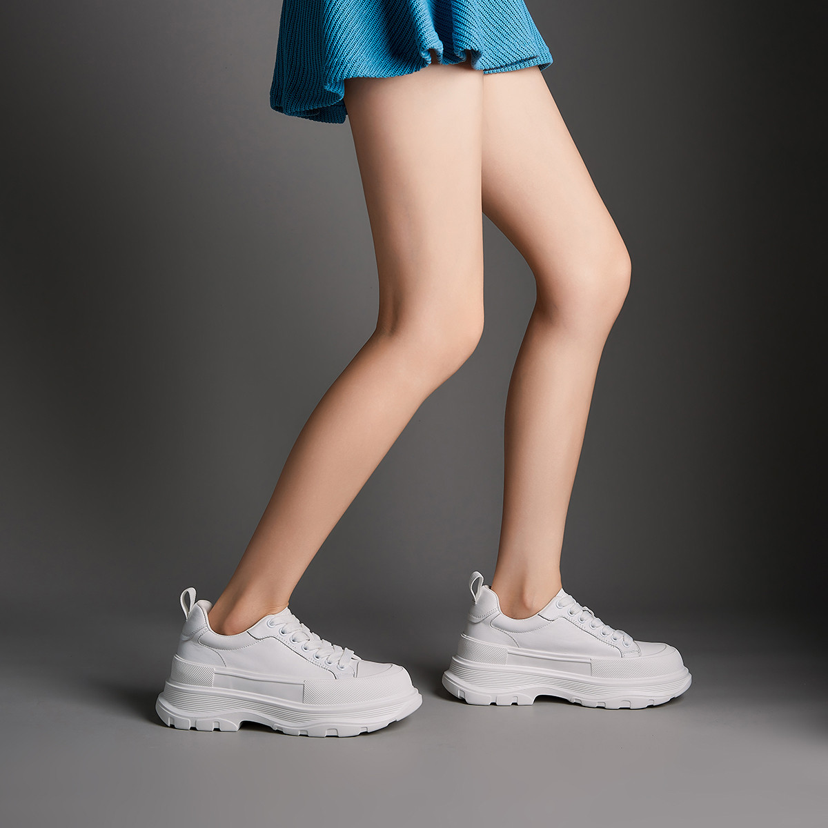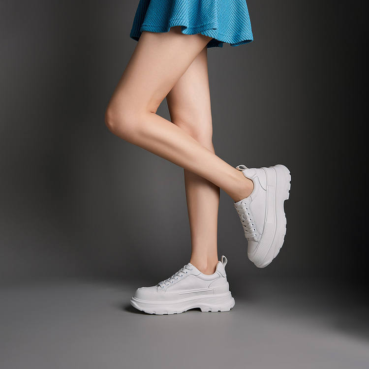 【女款】 玖熙增高厚底百搭真皮小白鞋女简约舒适女休闲鞋子女