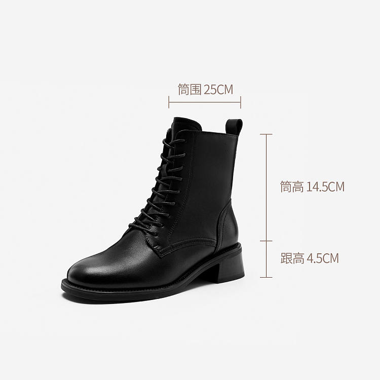 【女款】 玖熙简约侧拉链马丁靴女百搭短靴中跟增高女靴