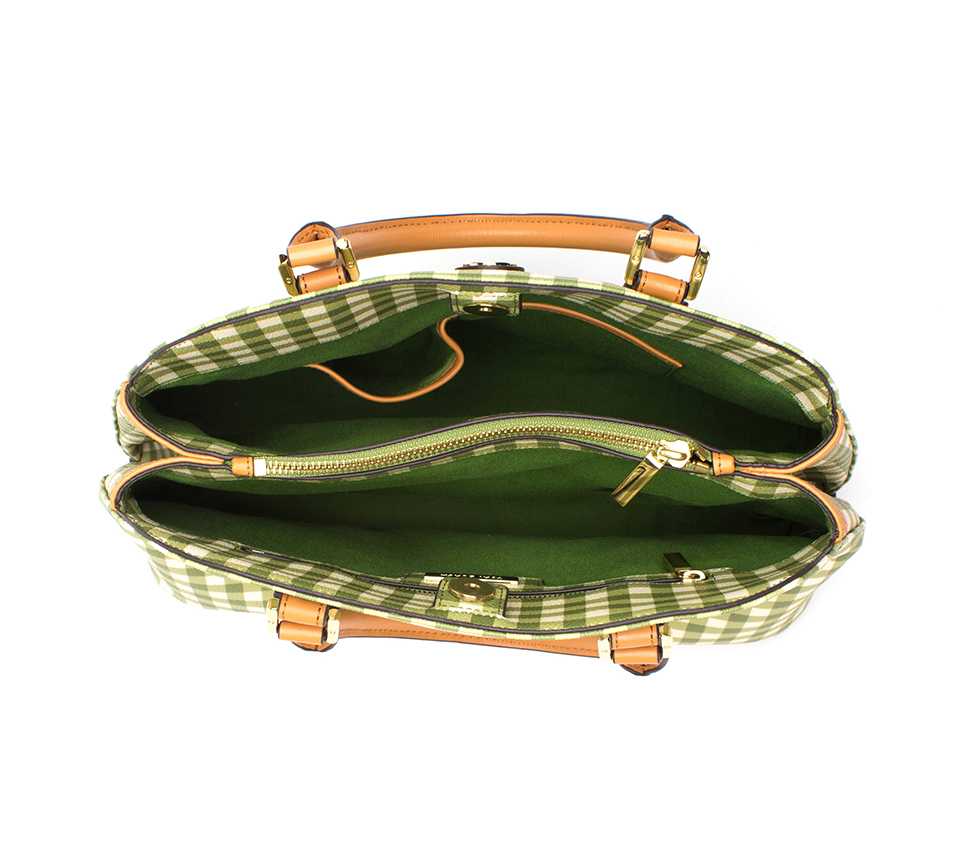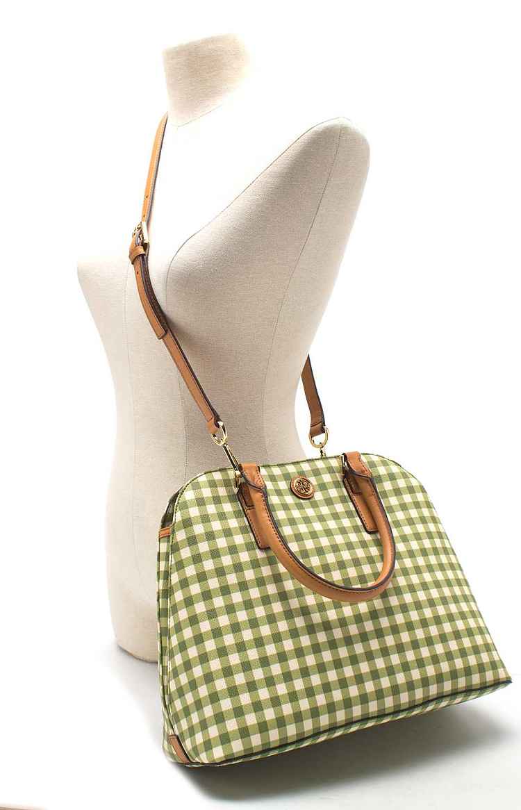 Tory Burch 科林顿色织格子半球形手提单肩包托特包 颜色:色织格子叶绿色 21149696-310