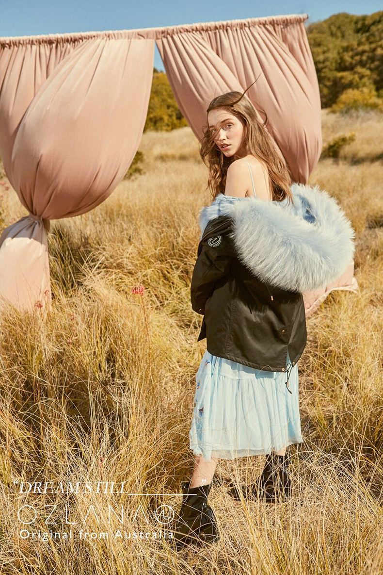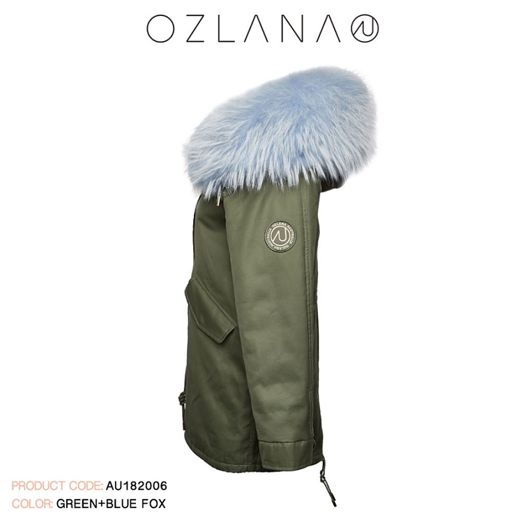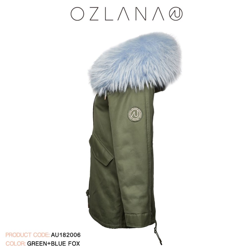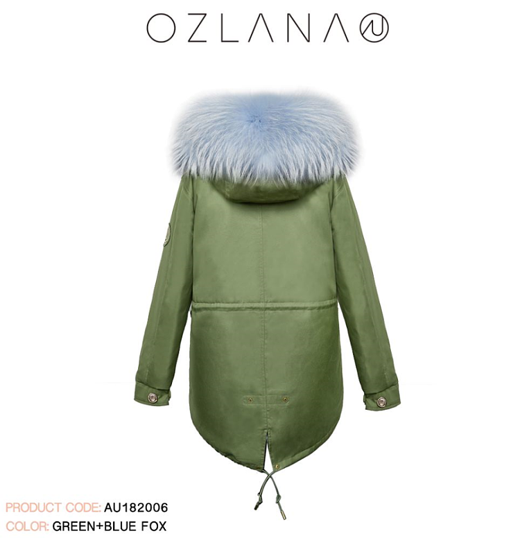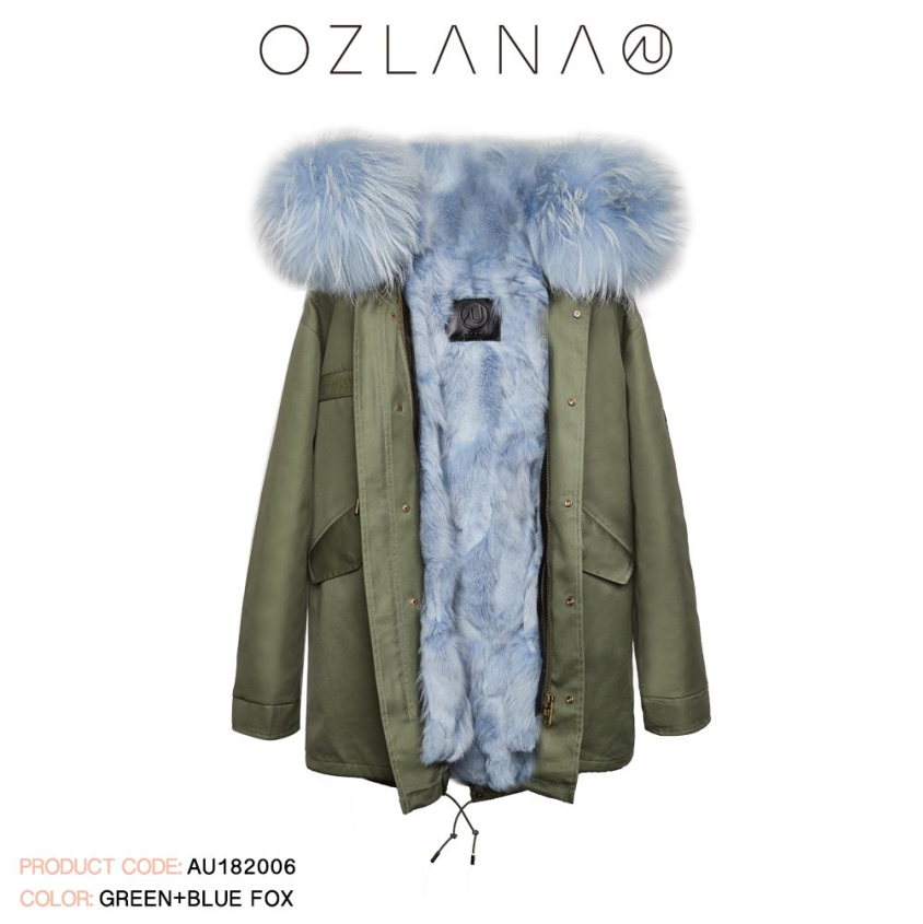 澳洲OZLANA2018秋冬新款防泼水时尚狐狸毛皮草大衣/派克外套AU182006绿+雾霾蓝狐狸毛 AU182006GreenBlueFox
