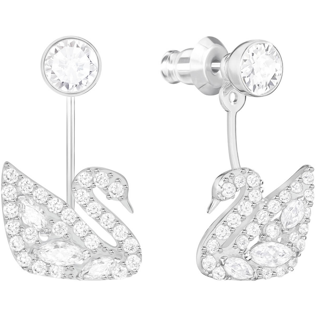 这款百搭迷人的花托式耳环,既妩媚又精致悦目。您可选择只戴上镀白金色的仿水晶耳钉,又或加上带密镶元素与榄尖形仿水晶的天鹅花托,展现时尚典雅的闪亮魅力。