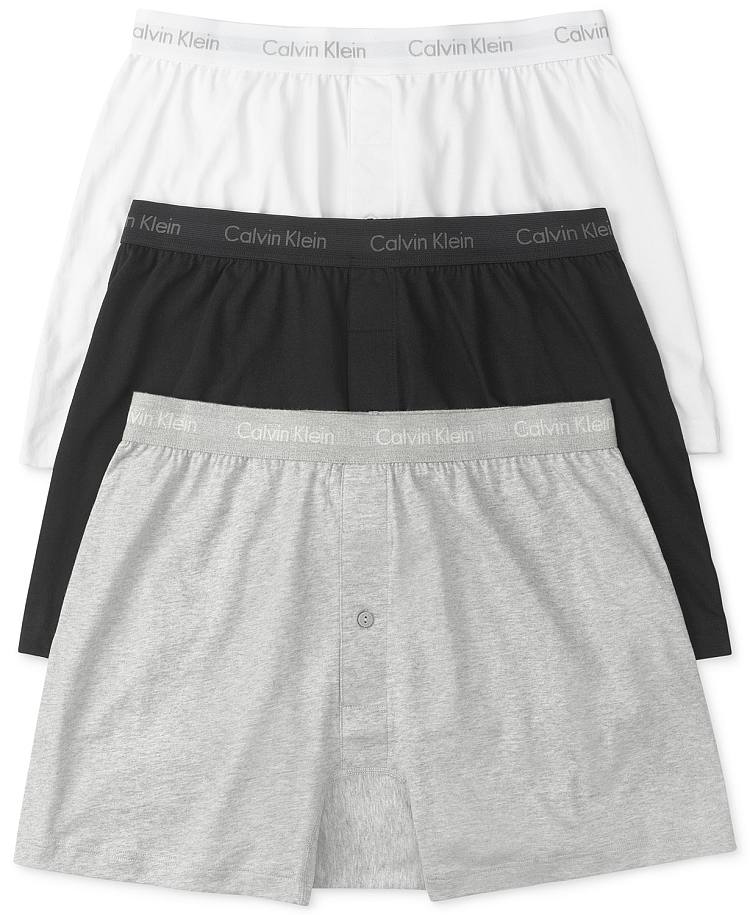 【男款】CK 经典纯棉针织宽松平角裤(有弹力)3条装 NU3040-900