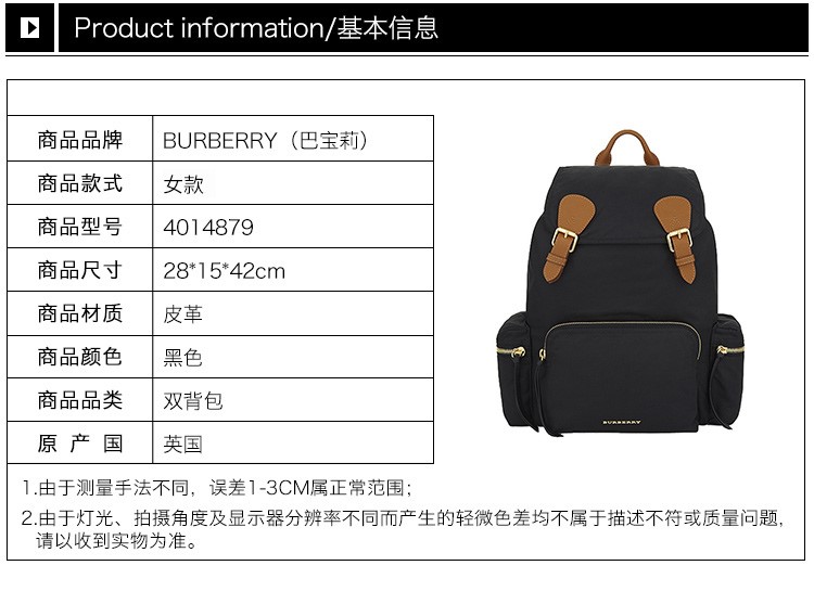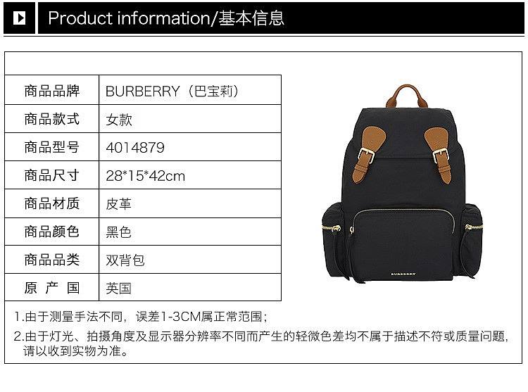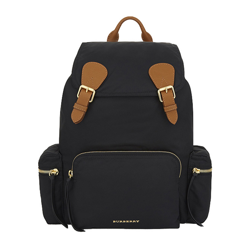 Burberry 巴宝莉 女士The Rucksack大号功能性尼龙拼皮革黑色军旅背包 4014879