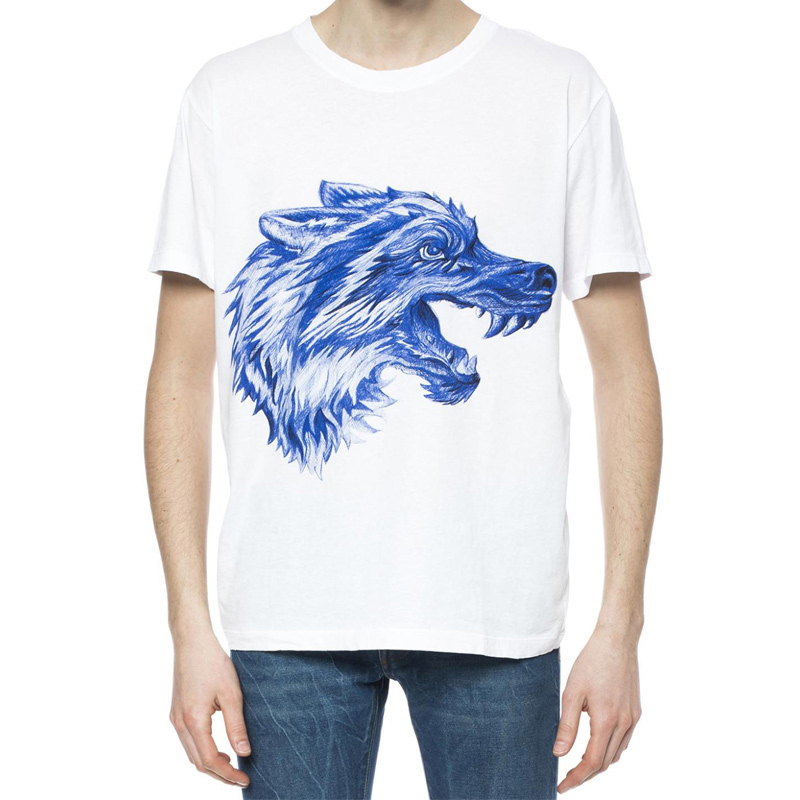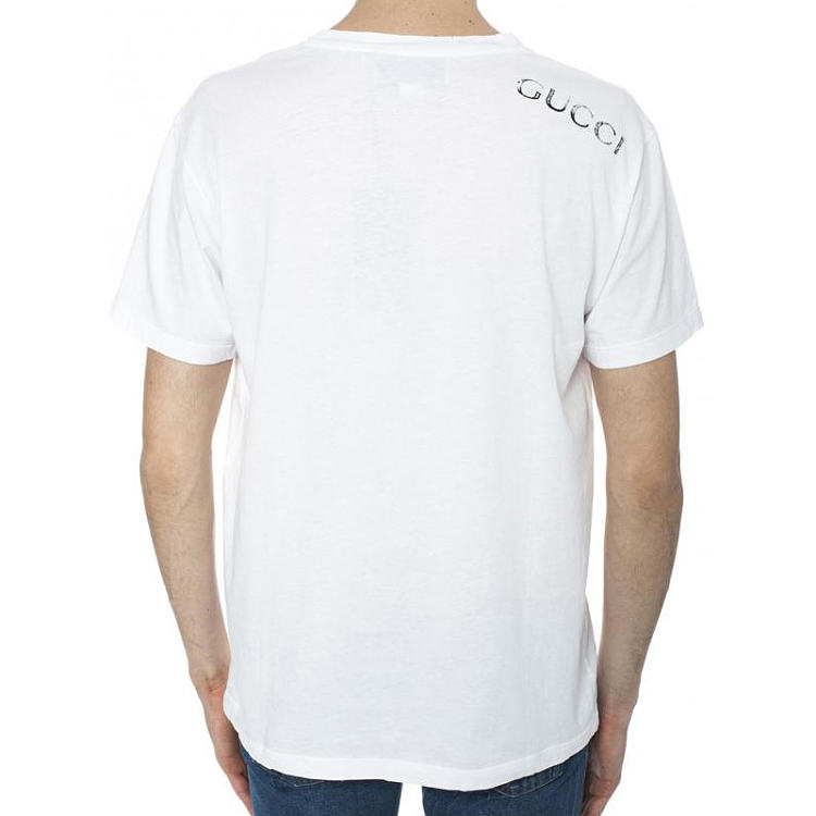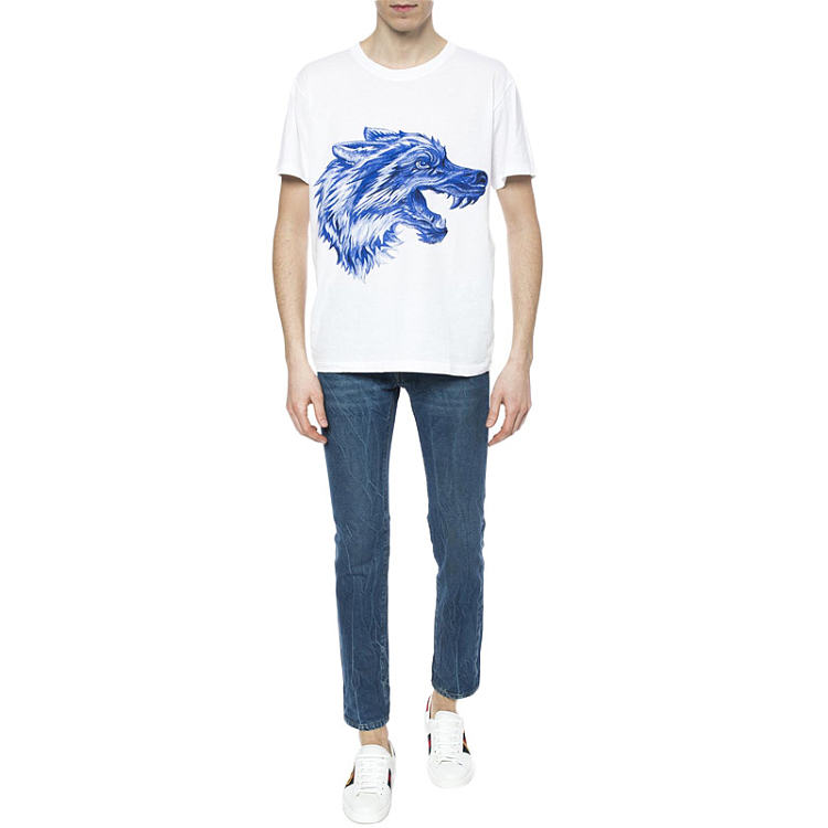 【男款】 GUCCI 古驰 男士白色纯棉狼头印花后肩字母logo时尚个性短袖T恤 497060-X3I46-9246