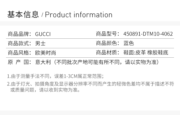 【男款】 QH SS19 GUCCI 古驰 男士蓝色平底鞋 450891-DTM10-4062