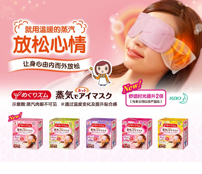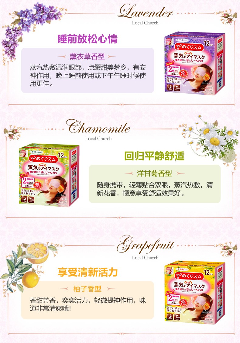 花王(KAO)蒸汽眼罩 去黑眼圈眼贴 缓解眼疲劳热敷睡眠12枚 新款 薰衣草型 4901301348043