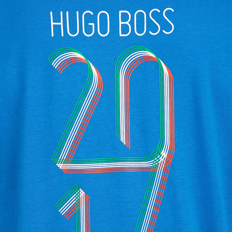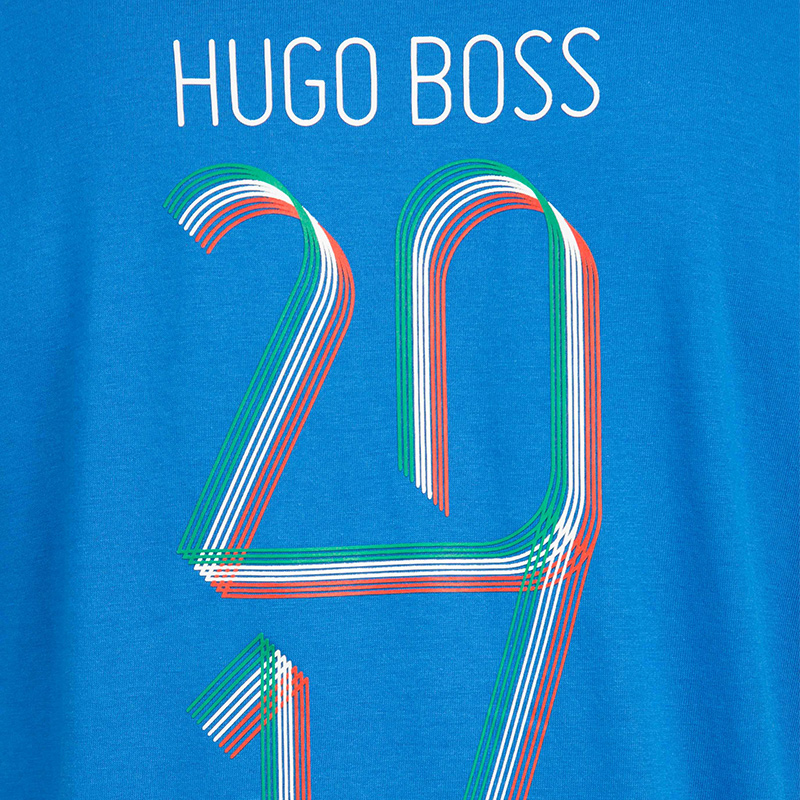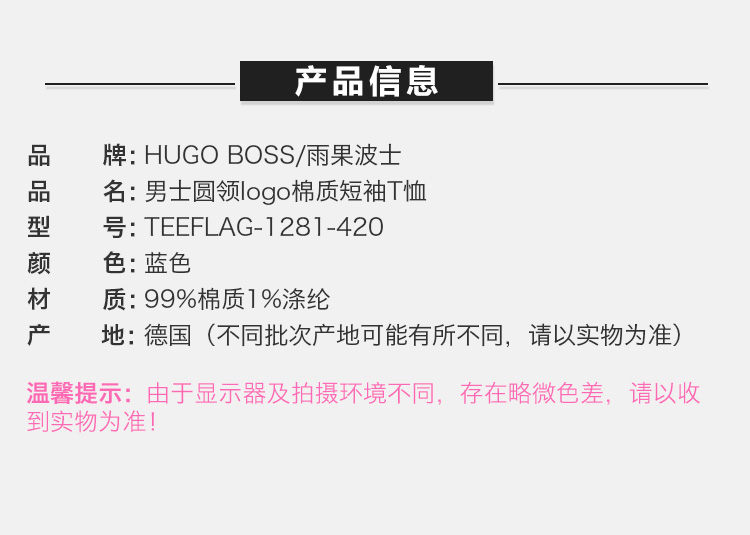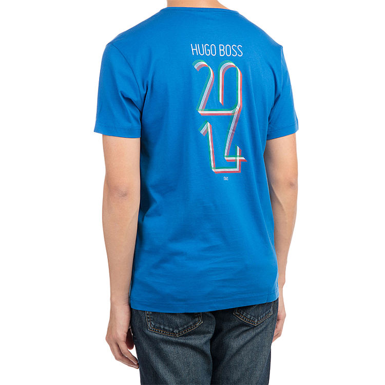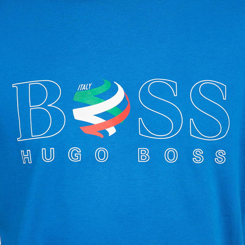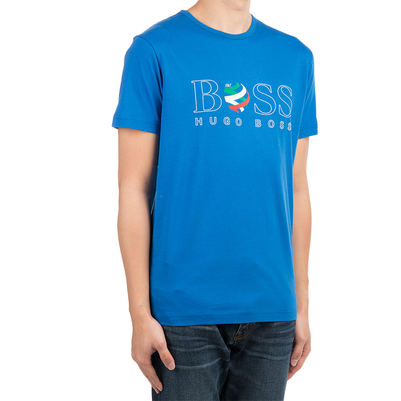 【男款】 Hugo Boss 雨果博斯 男士蓝色圆领logo棉质短袖T恤 TEEFLAG-1281-420