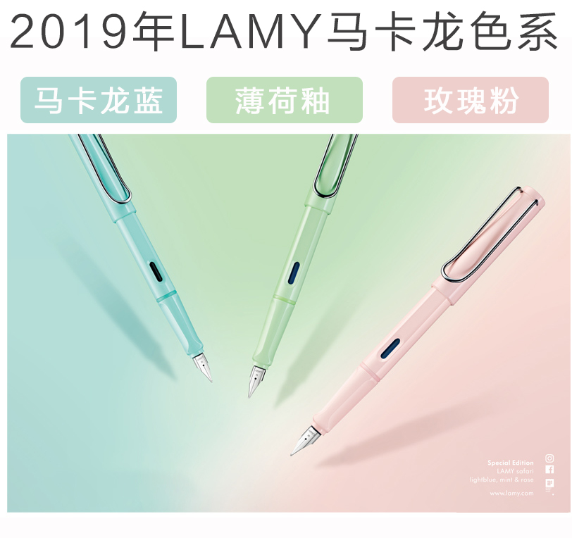 凌美(LAMY)马卡龙冰激淋2019新款限量safari狩猎系列钢笔墨水笔 粉嫩糖果清新 粉红 F尖 含一次性墨囊 LAMY-MACAROONPOWDE