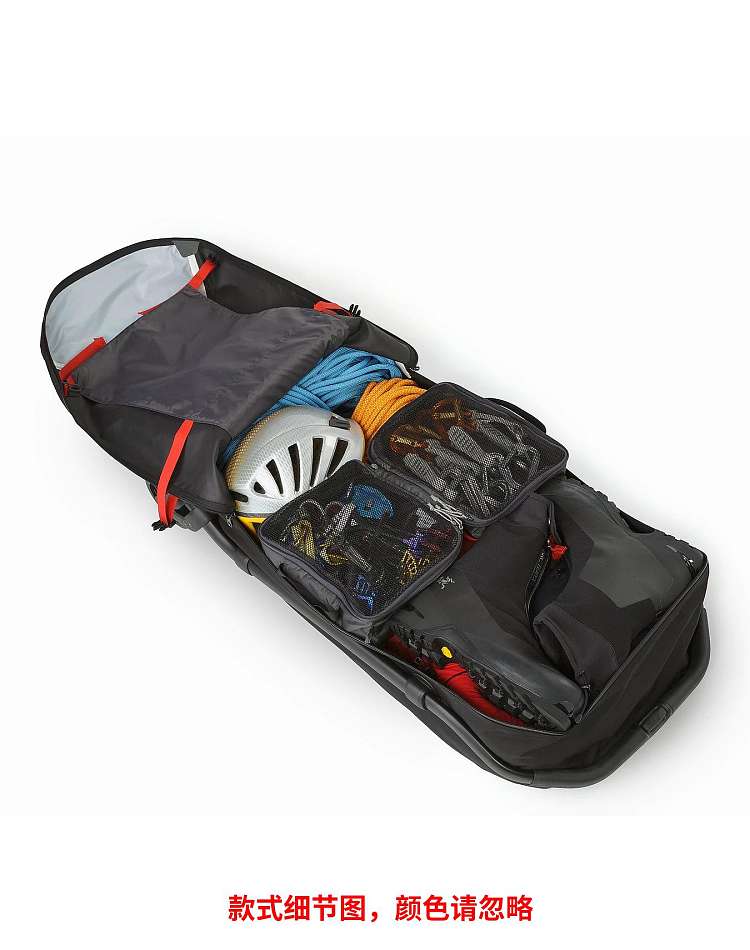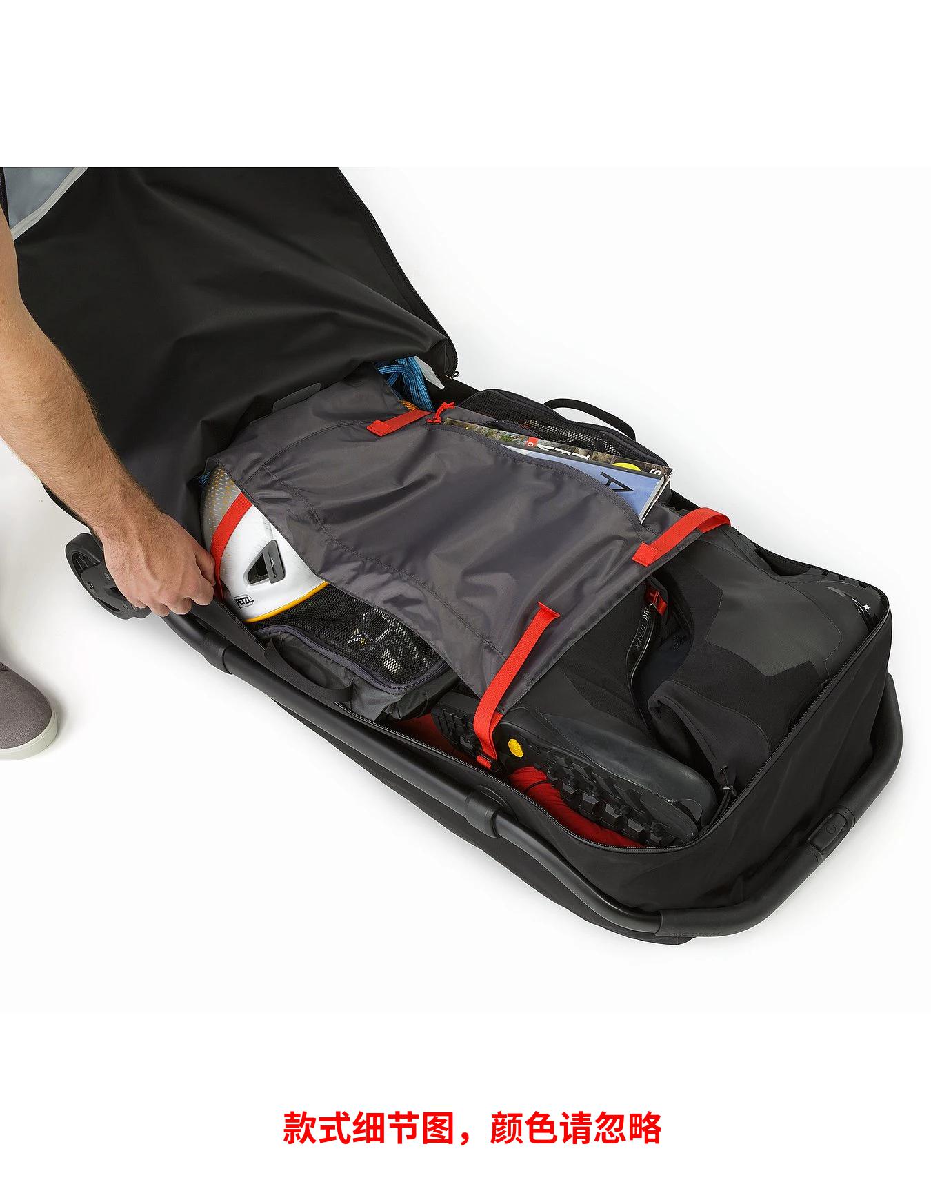 110L滚轮行李箱可存放攀岩、滑雪和徒步旅程的装备。