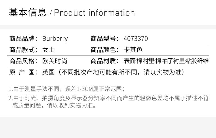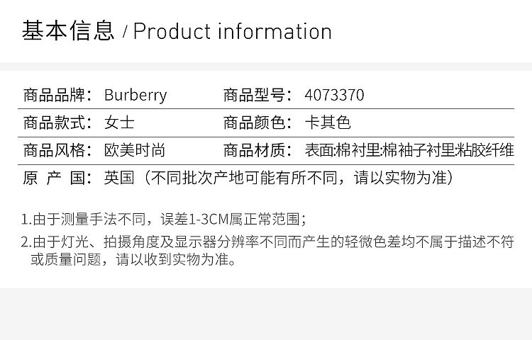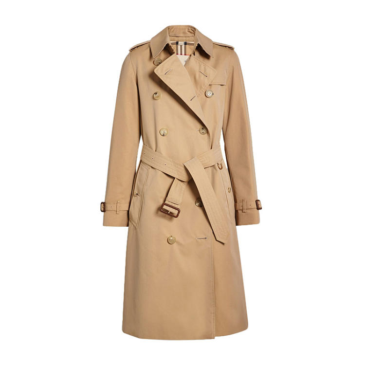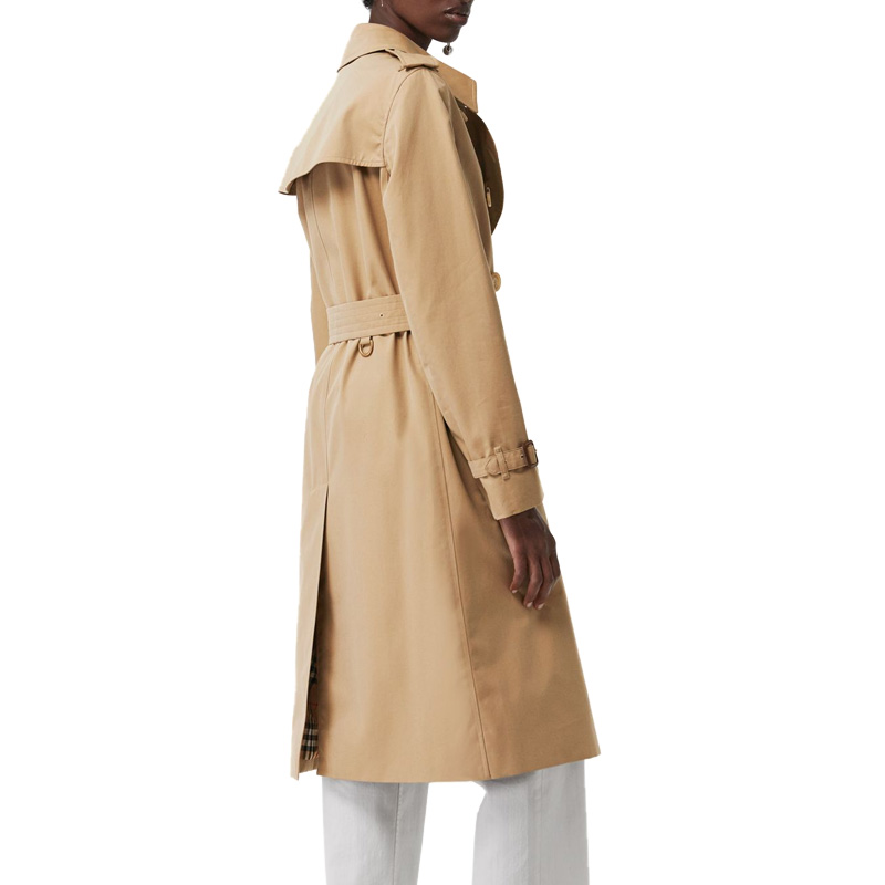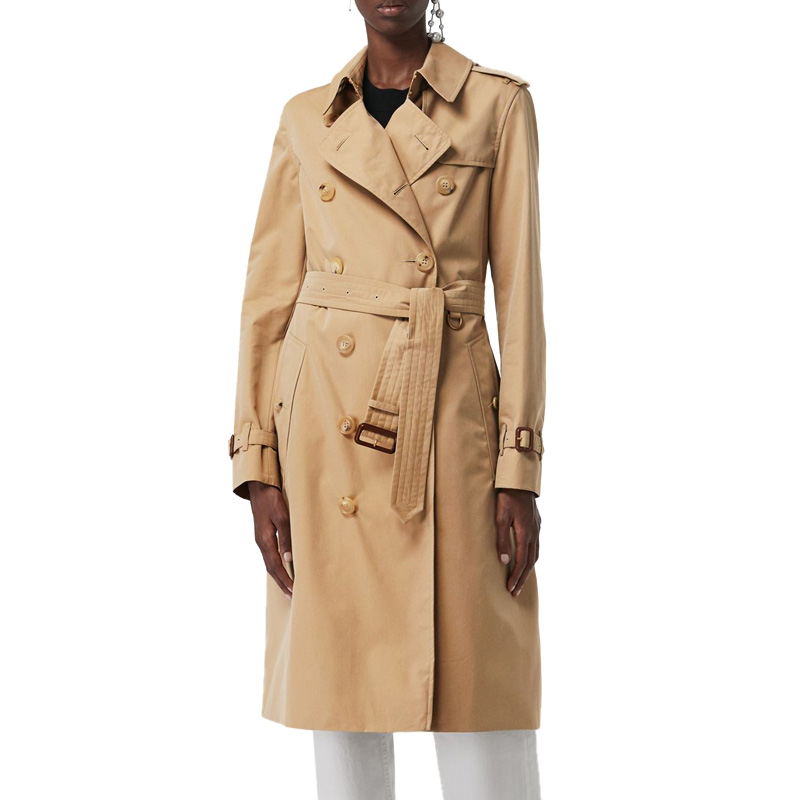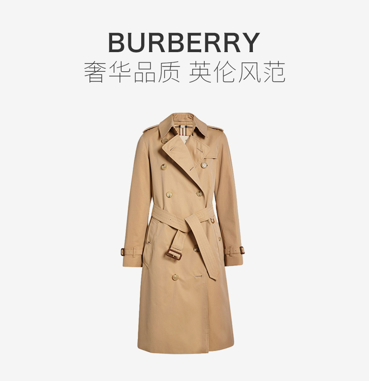 【女款】 QH Burberry 巴宝莉 女士纯棉卡其色双排扣收腰长款风衣 4073370