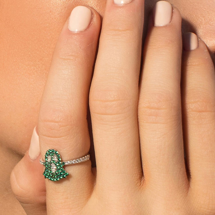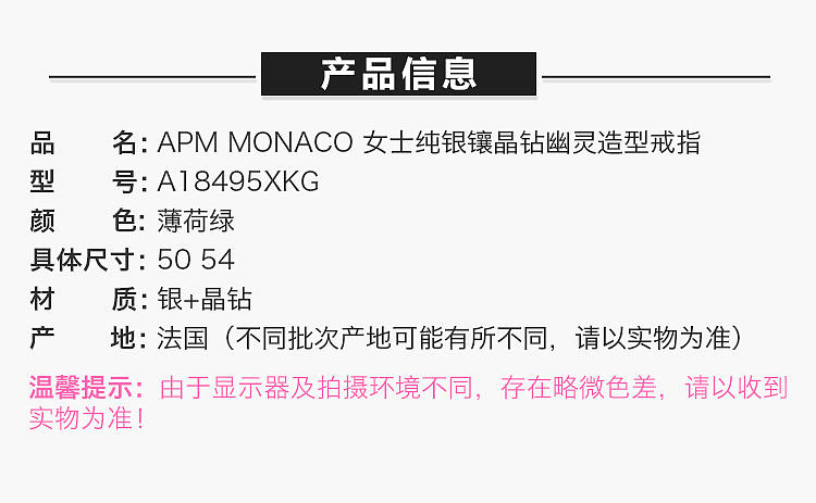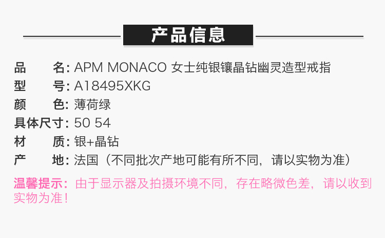 APM MONACO 女士纯银镶薄荷绿晶钻幽灵造型戒指 A18495XKG