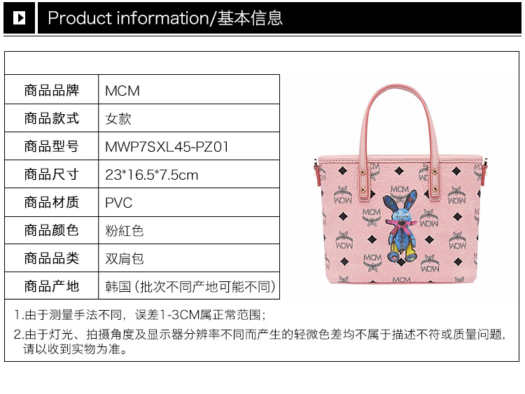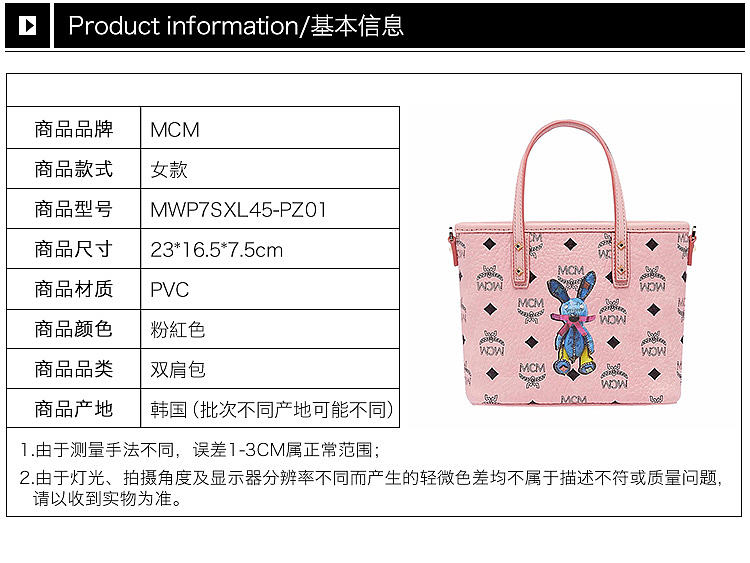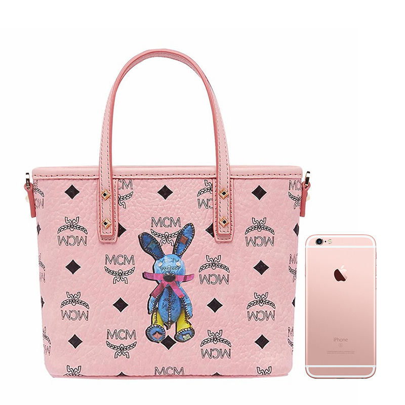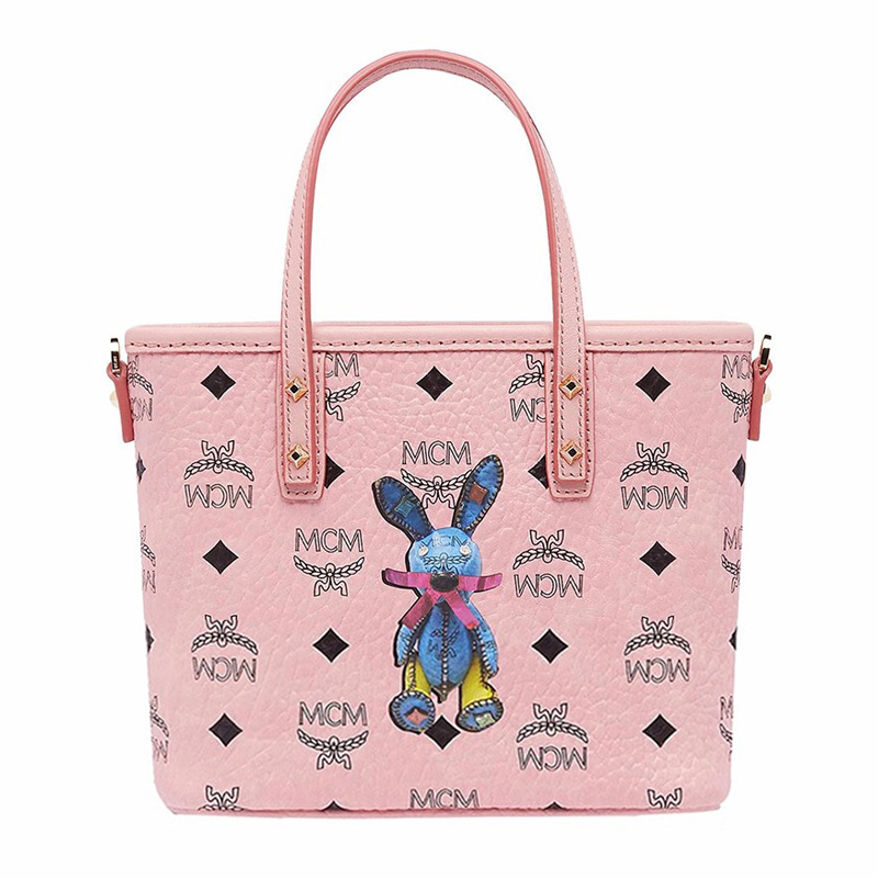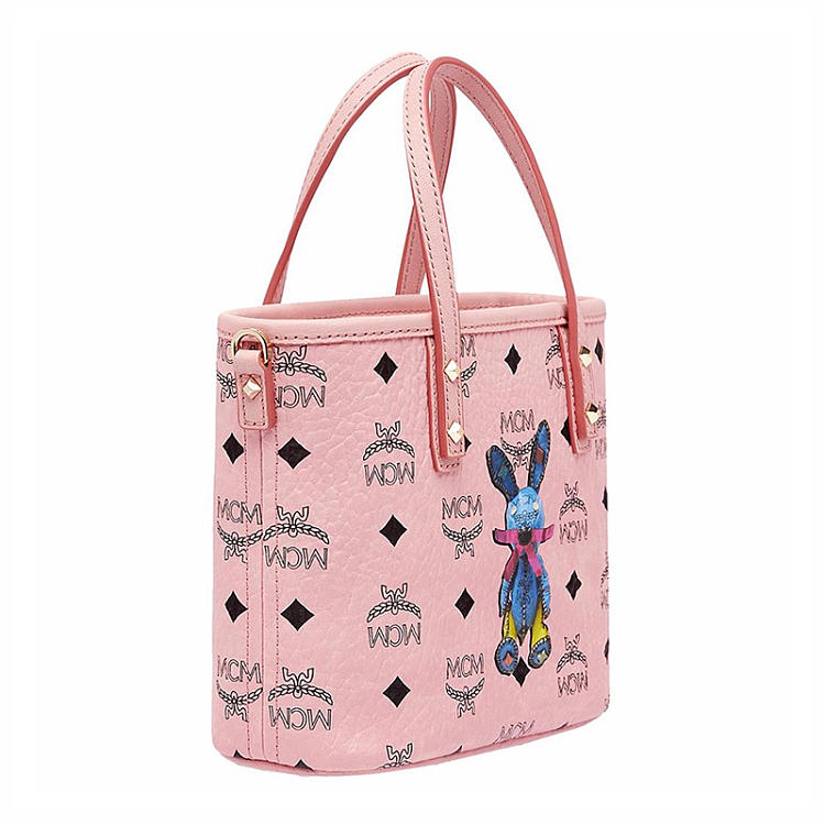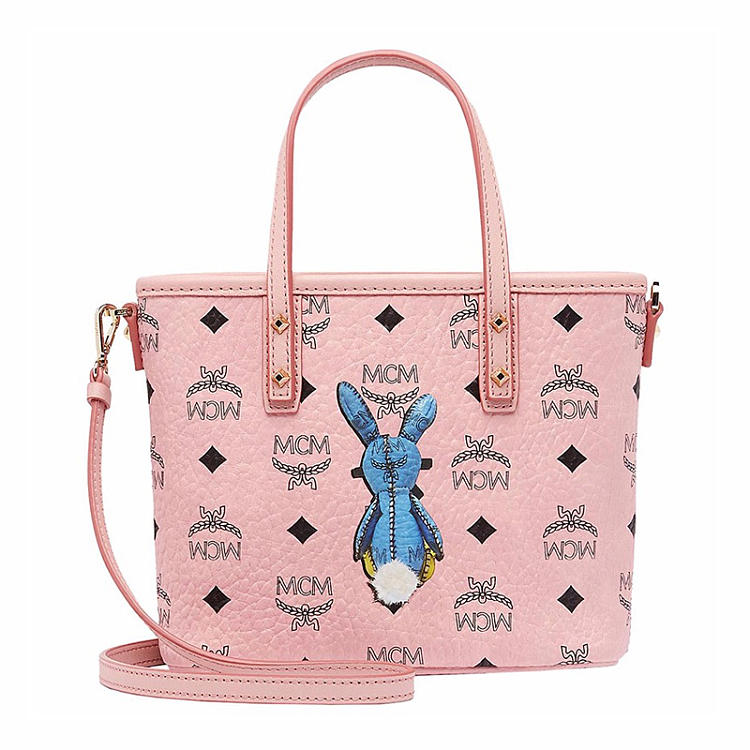 【女款】 MCM 女士粉色PVC兔子印花图案迷你手提单肩包 MWP7SXL45-PZ01