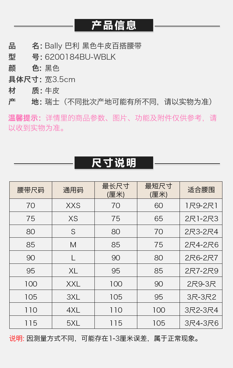 【男款】 Bally 巴利 黑色牛皮男士腰带 6200184
