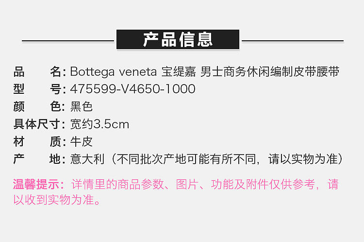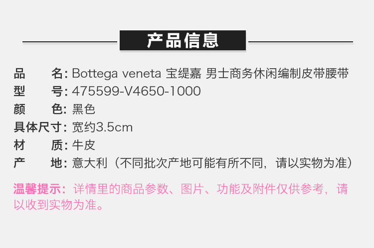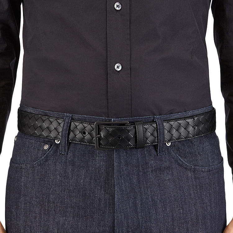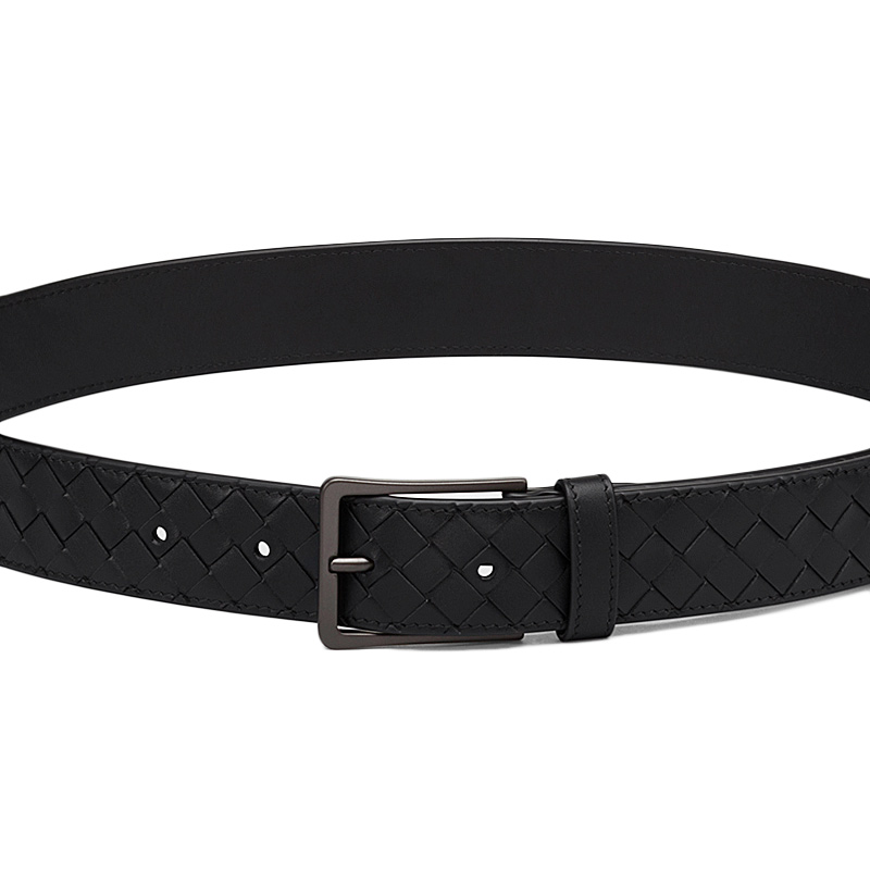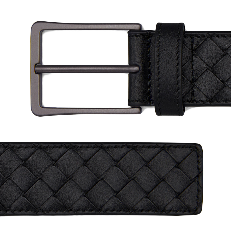 Bottega Veneta 宝缇嘉 男士黑色牛皮编织针扣腰带 475599-V4650-1000