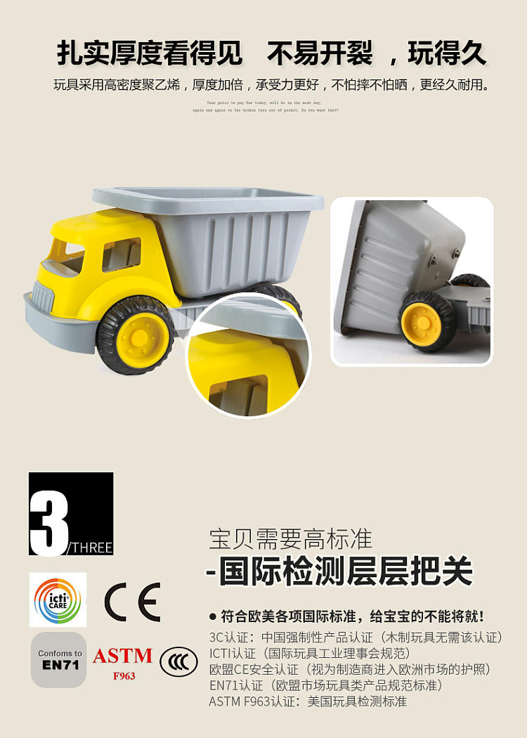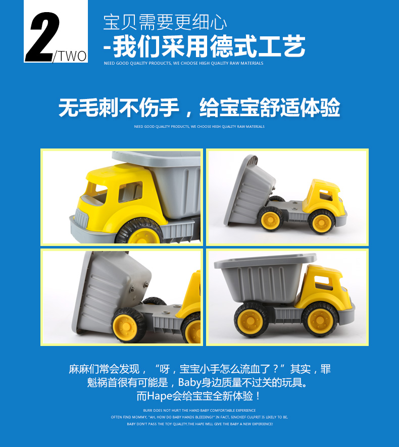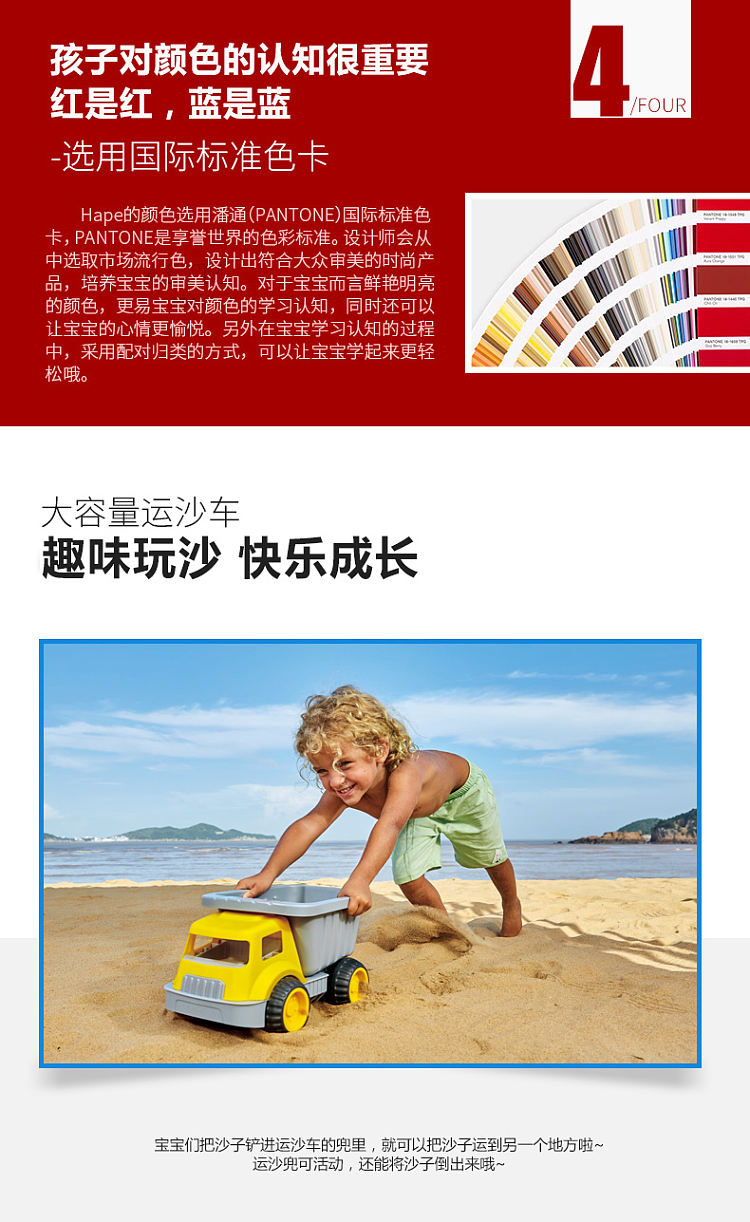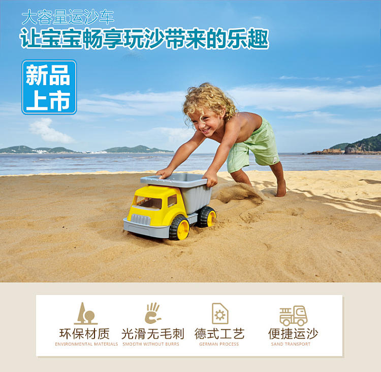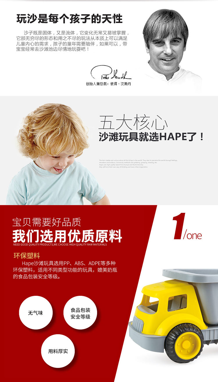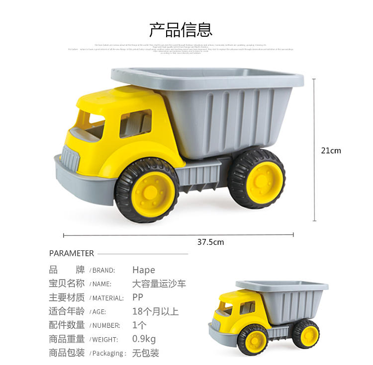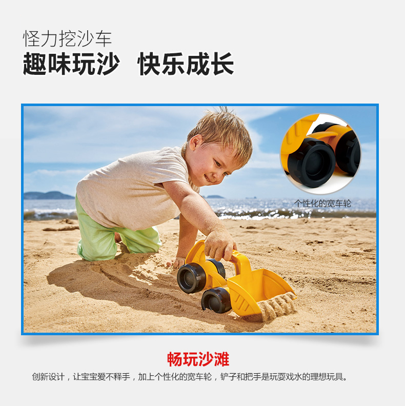德国(Hape)黄色超级运沙翻斗车 儿童沙滩玩具手推车 E4084 动手观察力方向感训练
