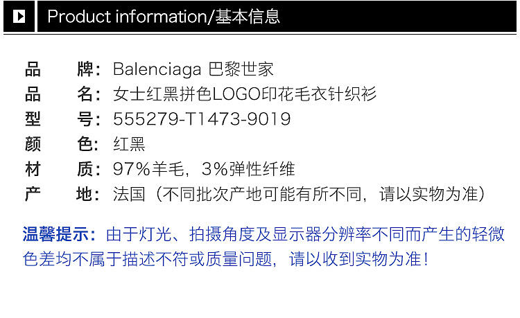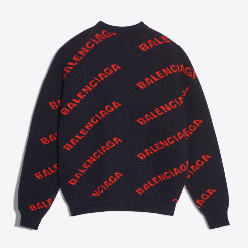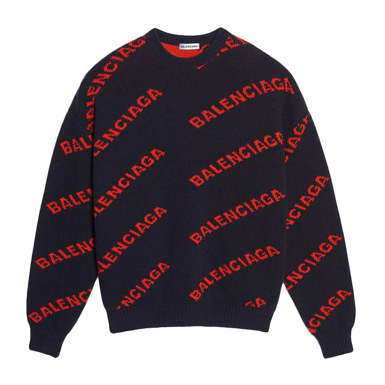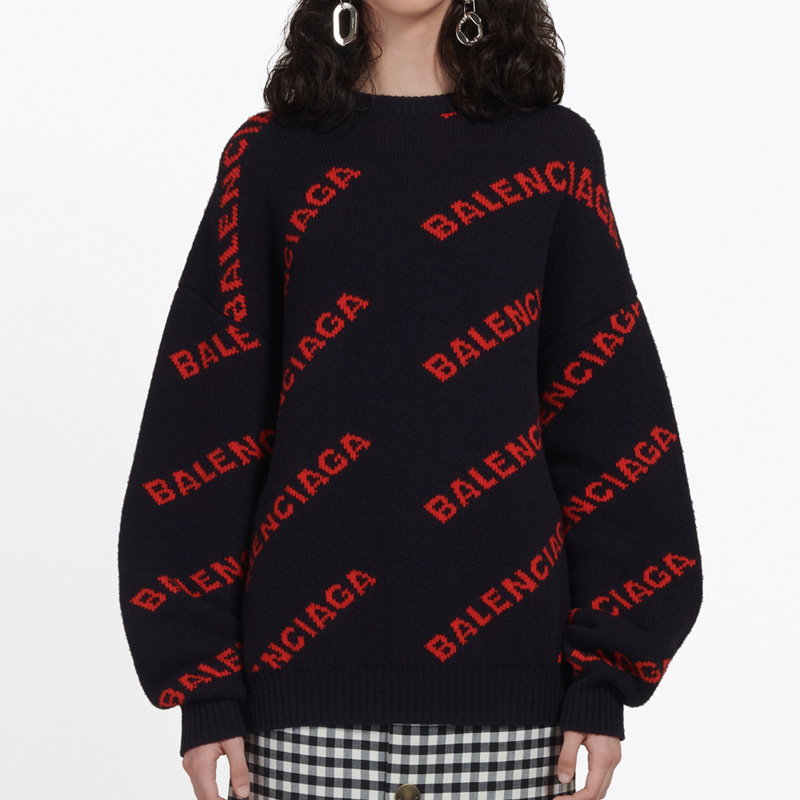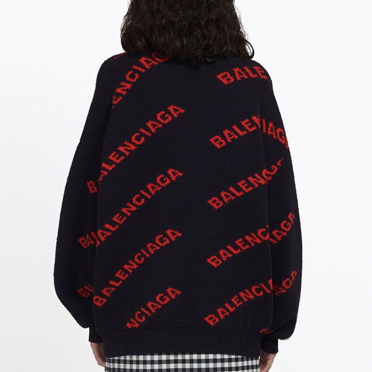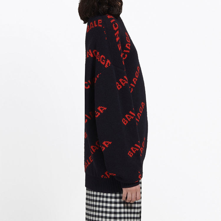 【女款】 Balenciaga 巴黎世家 女士红黑字母印花毛衣 555279-T1473-9019