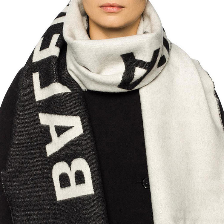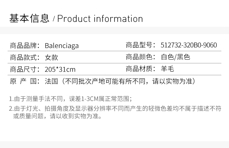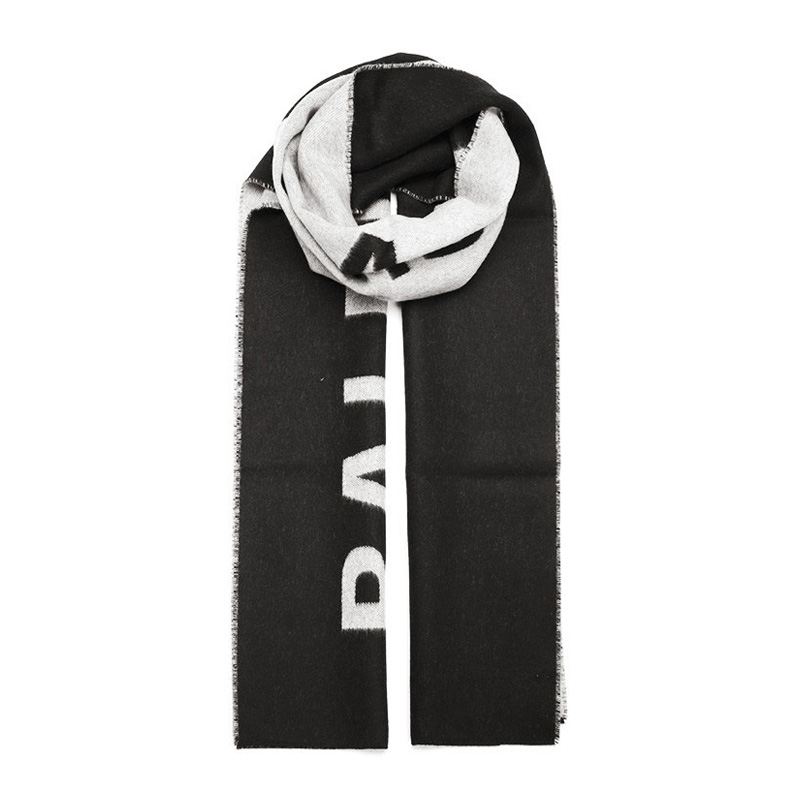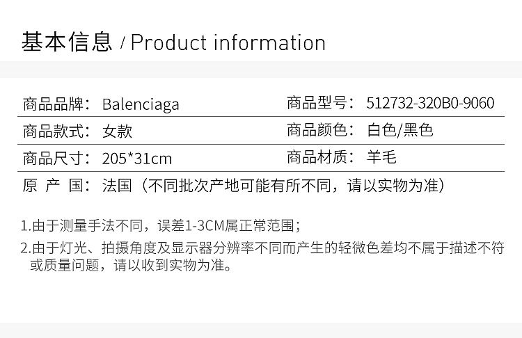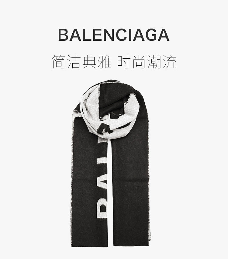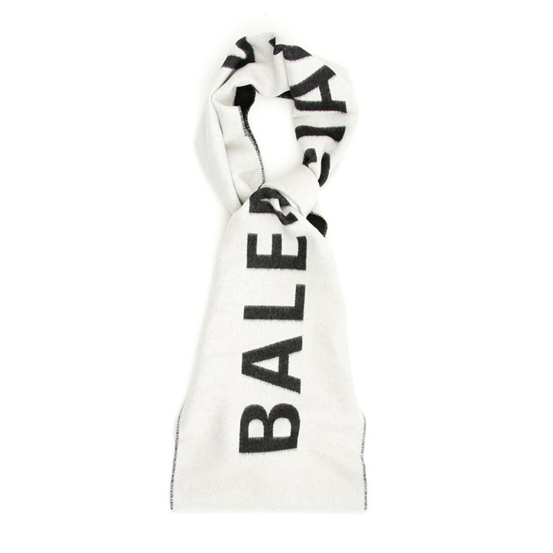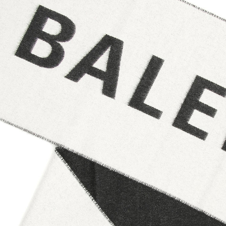 【男款】 QH Balenciaga 巴黎世家 黑色logo白色羊毛中性围巾 512732-320B0-9060