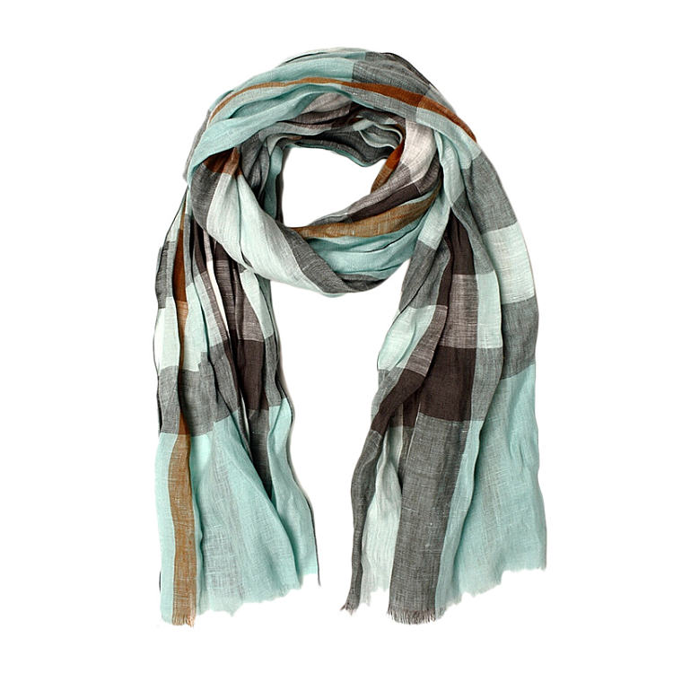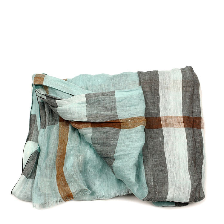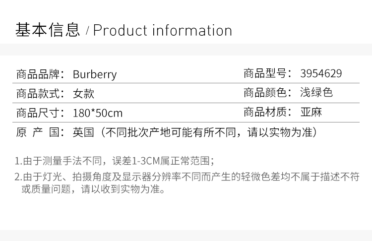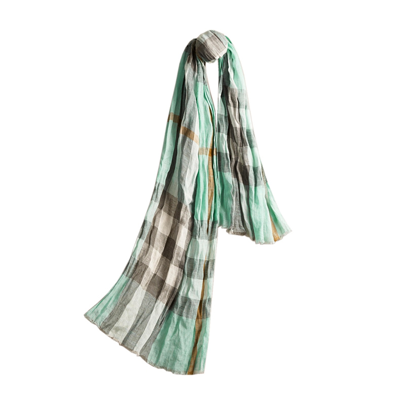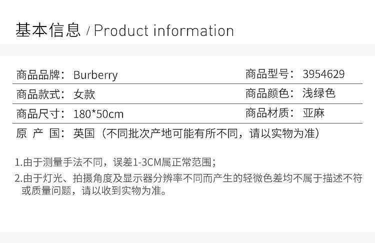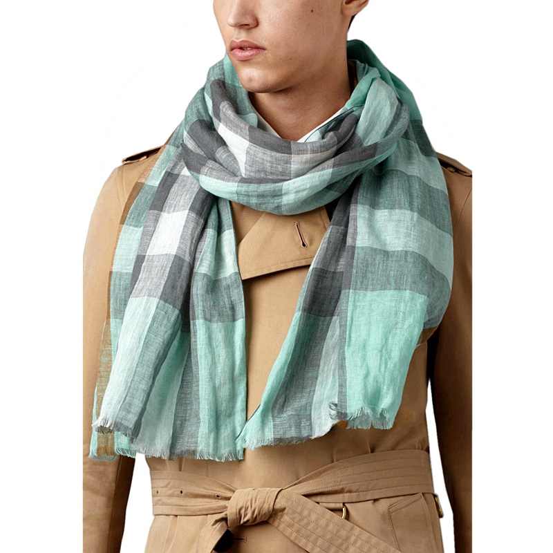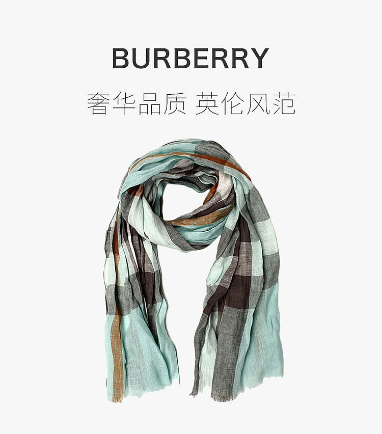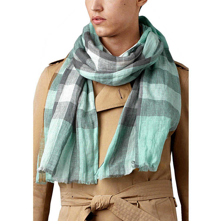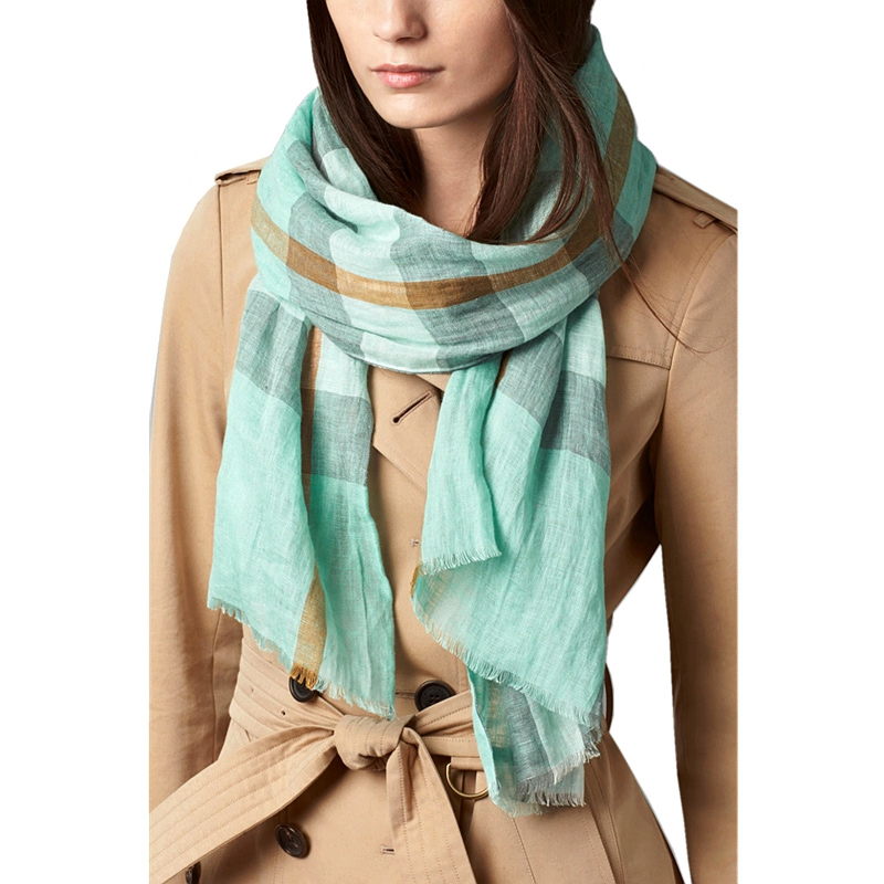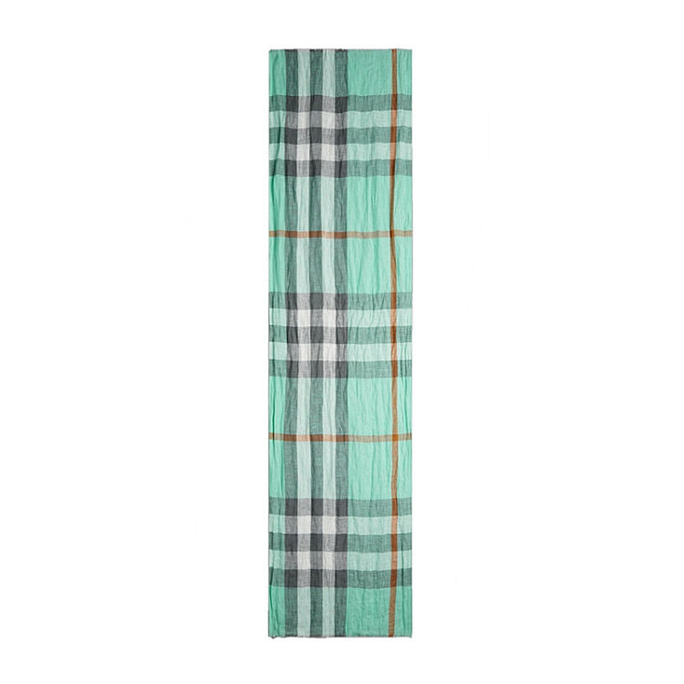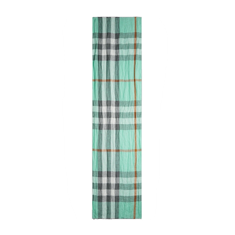 【女款】 Burberry 巴宝莉 女士浅绿色格纹亚麻围巾 3954629